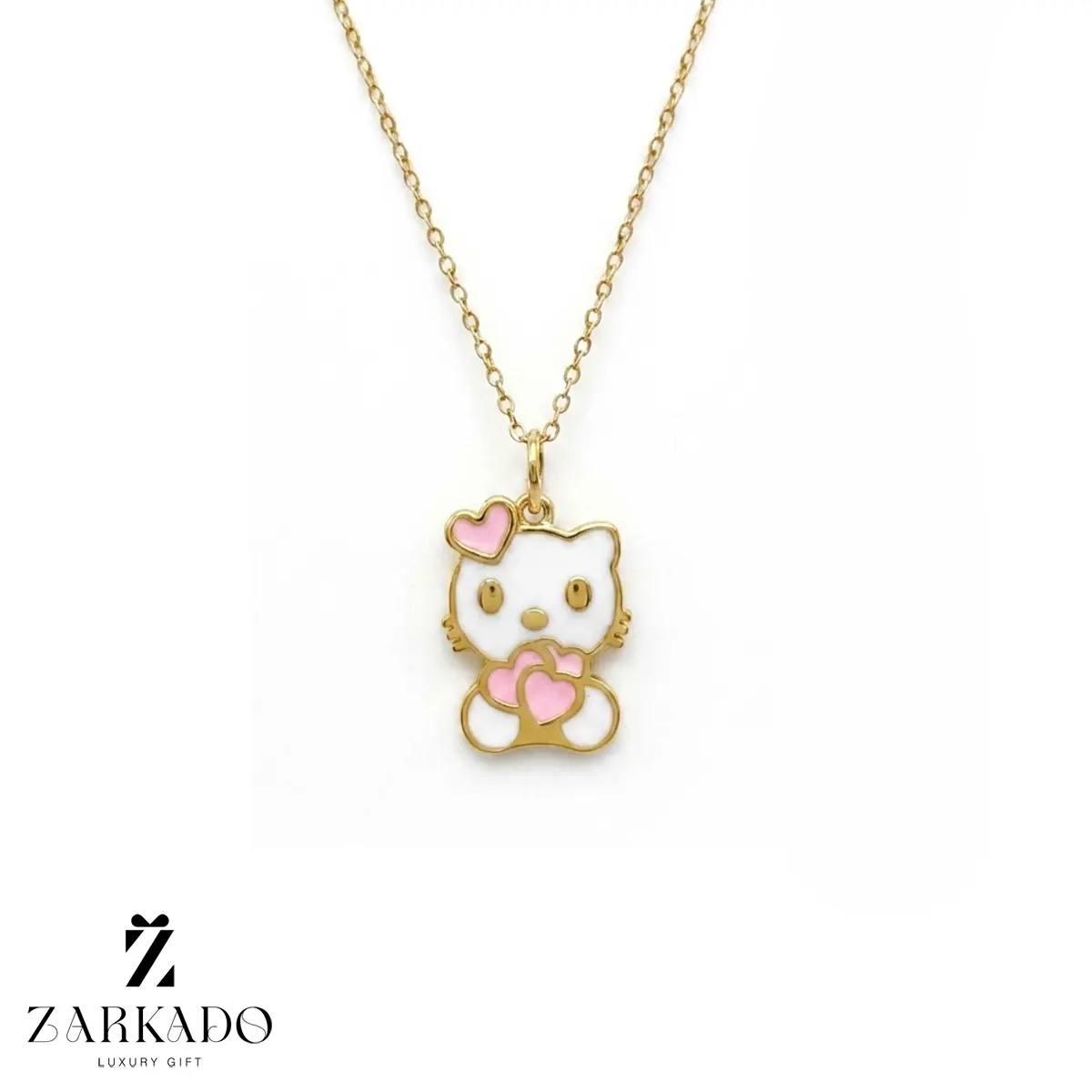 این پلاک از طلای ۱۸ عیار ساخته شده و طرح کارتونی کیتی با فرم کاملاً مشخص و کودکپسند در تصویر دیده میشود که برای خرید پلاک طلا کودکانه بسیار پرطرفدار است ✨
