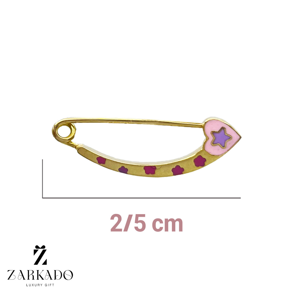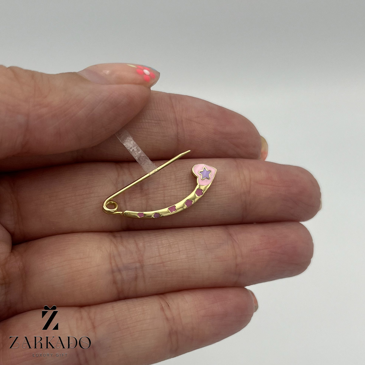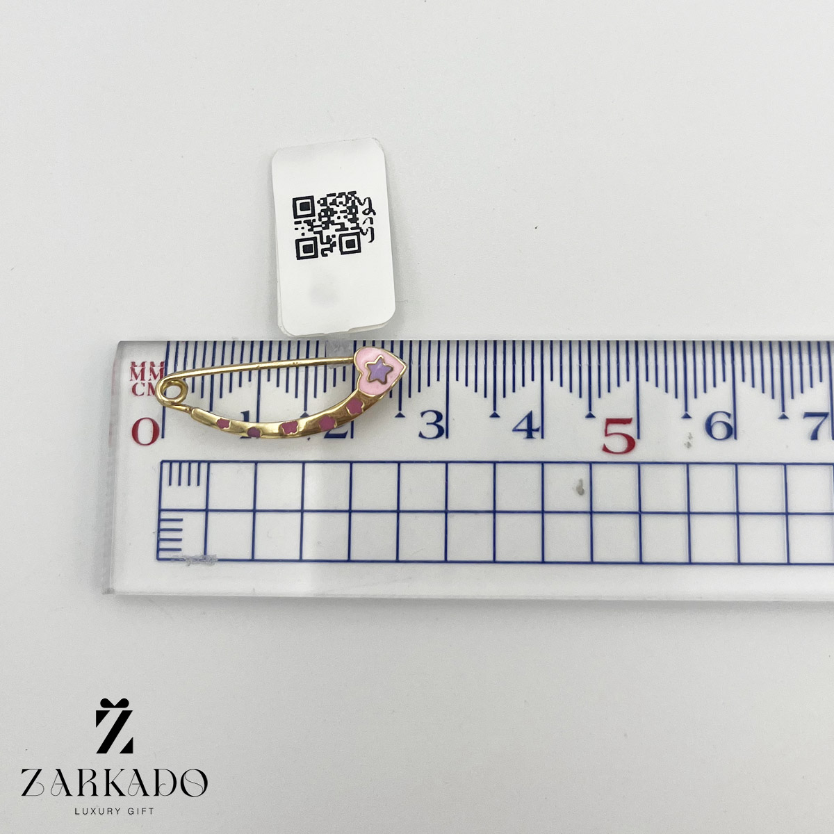 سنجاق طلا کودک طرح کمانی قلب صورتی کد B7495