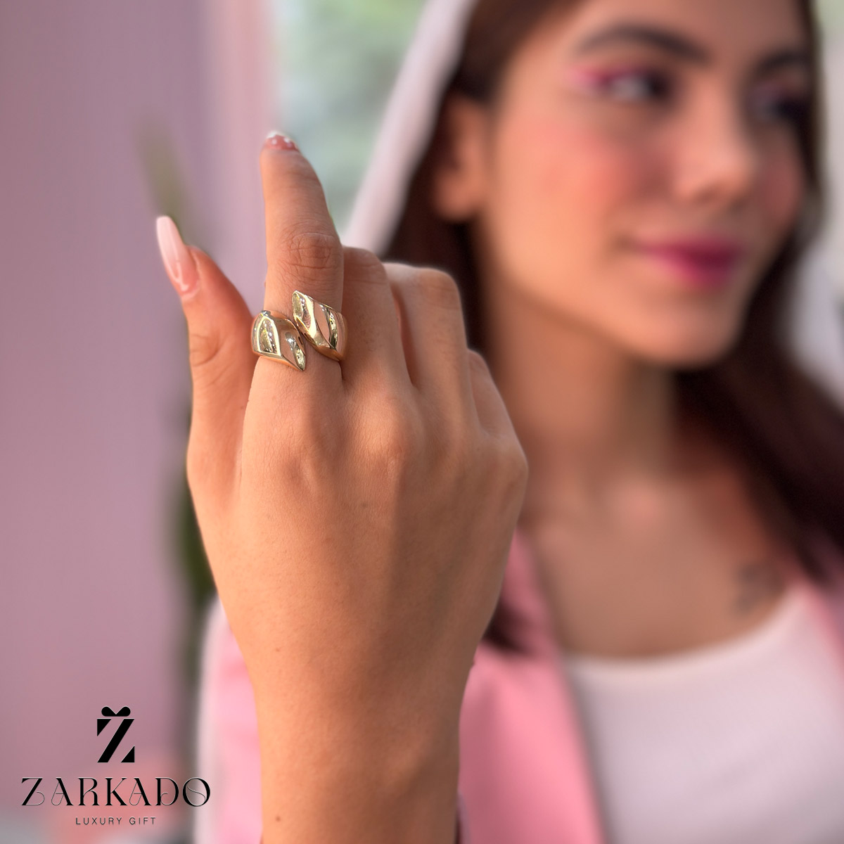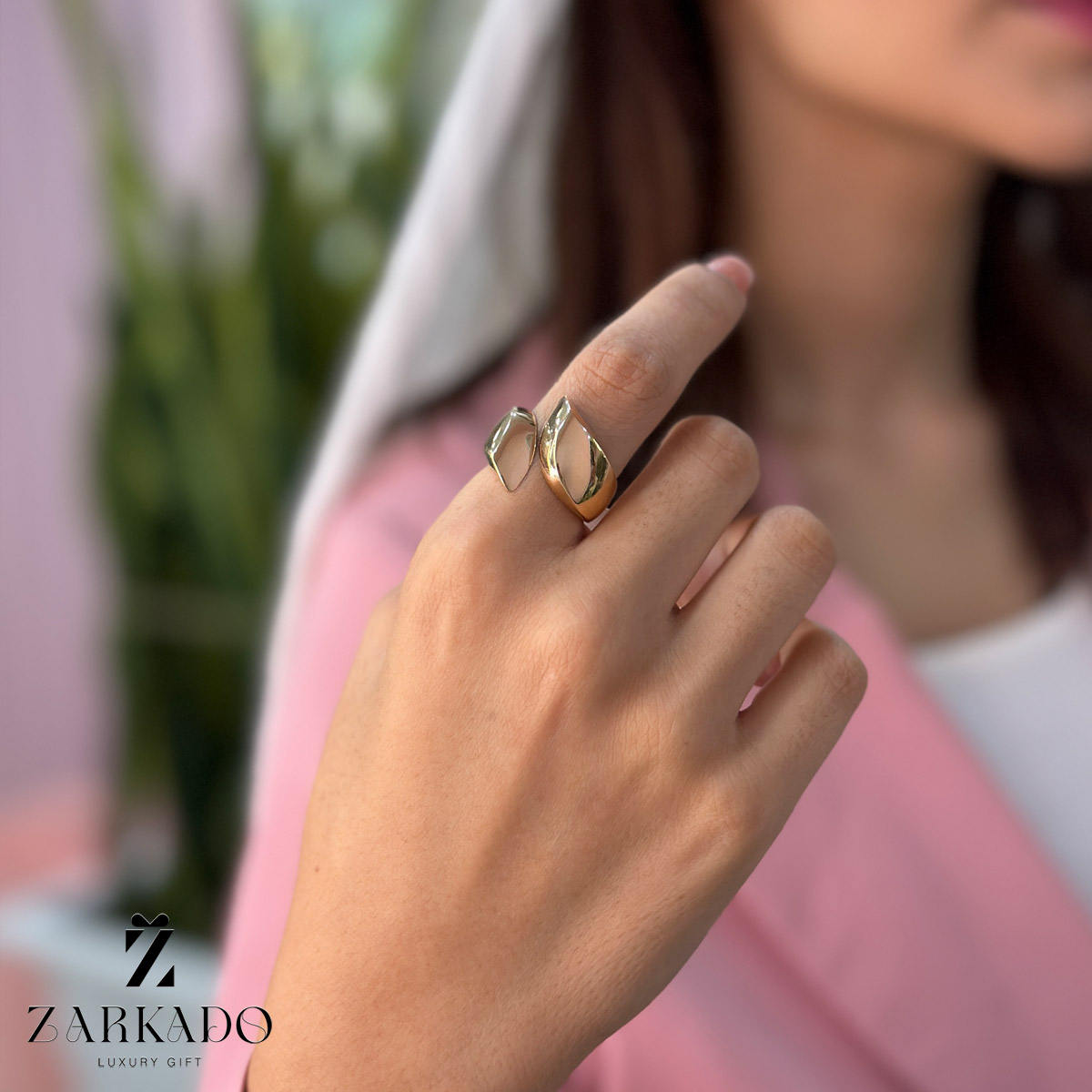 طرح انگشتر حجمی حالت برگ و بسیار شیک میباشد