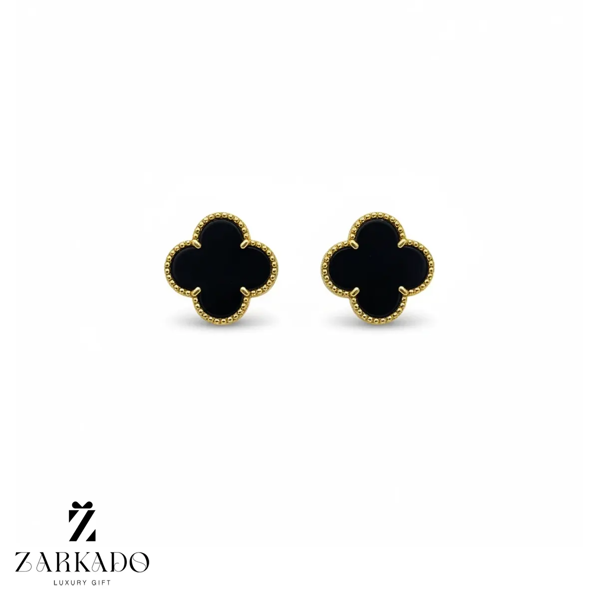 این مدل گوشواره میخی طلا طرح ونکلیف که با سنگ اونیکس مشکی کار شده است
