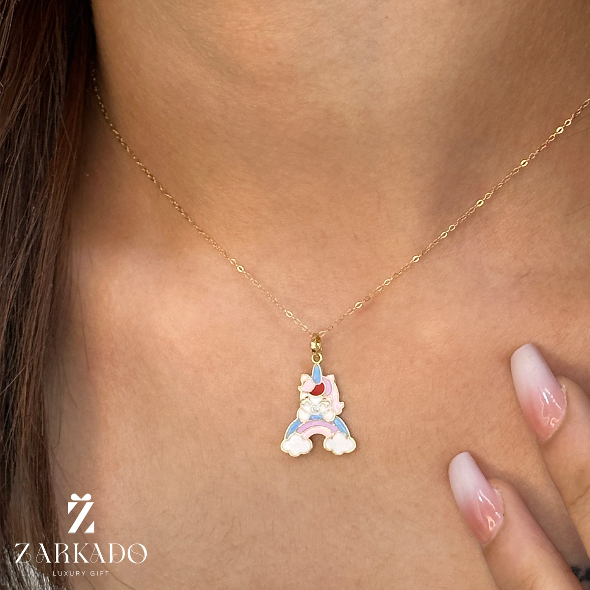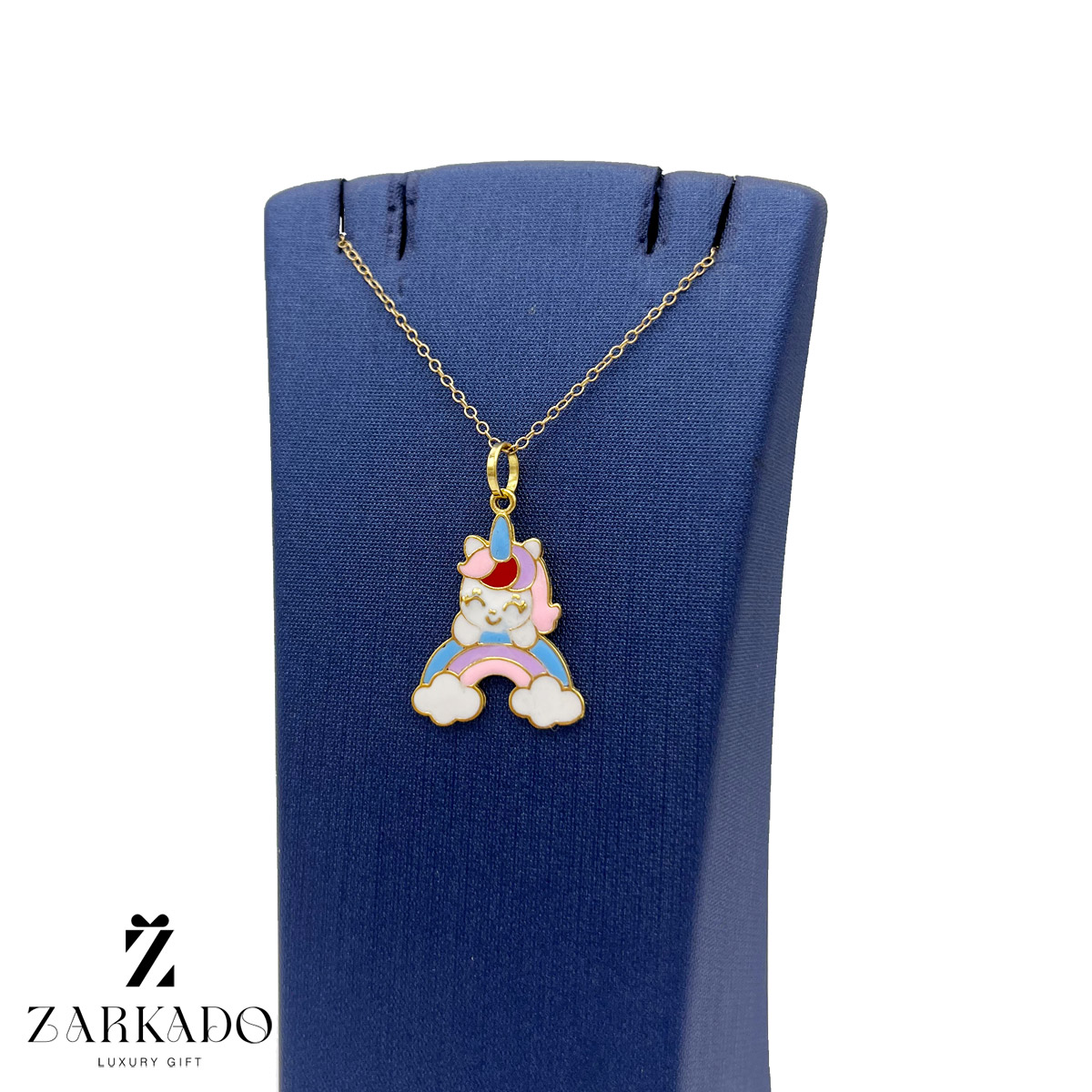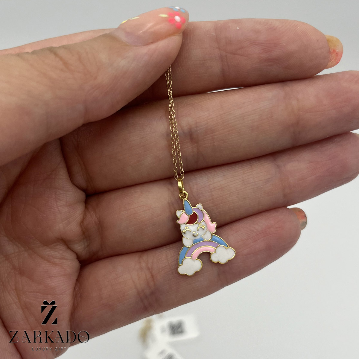 پلاک طرح یونیکورن و رنگین کمان از جنس طلای 18 عیار میباشد