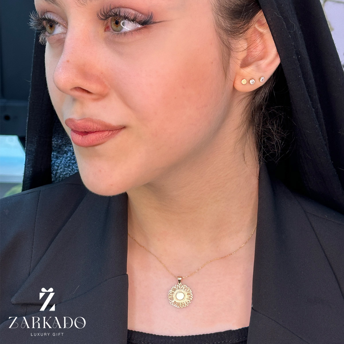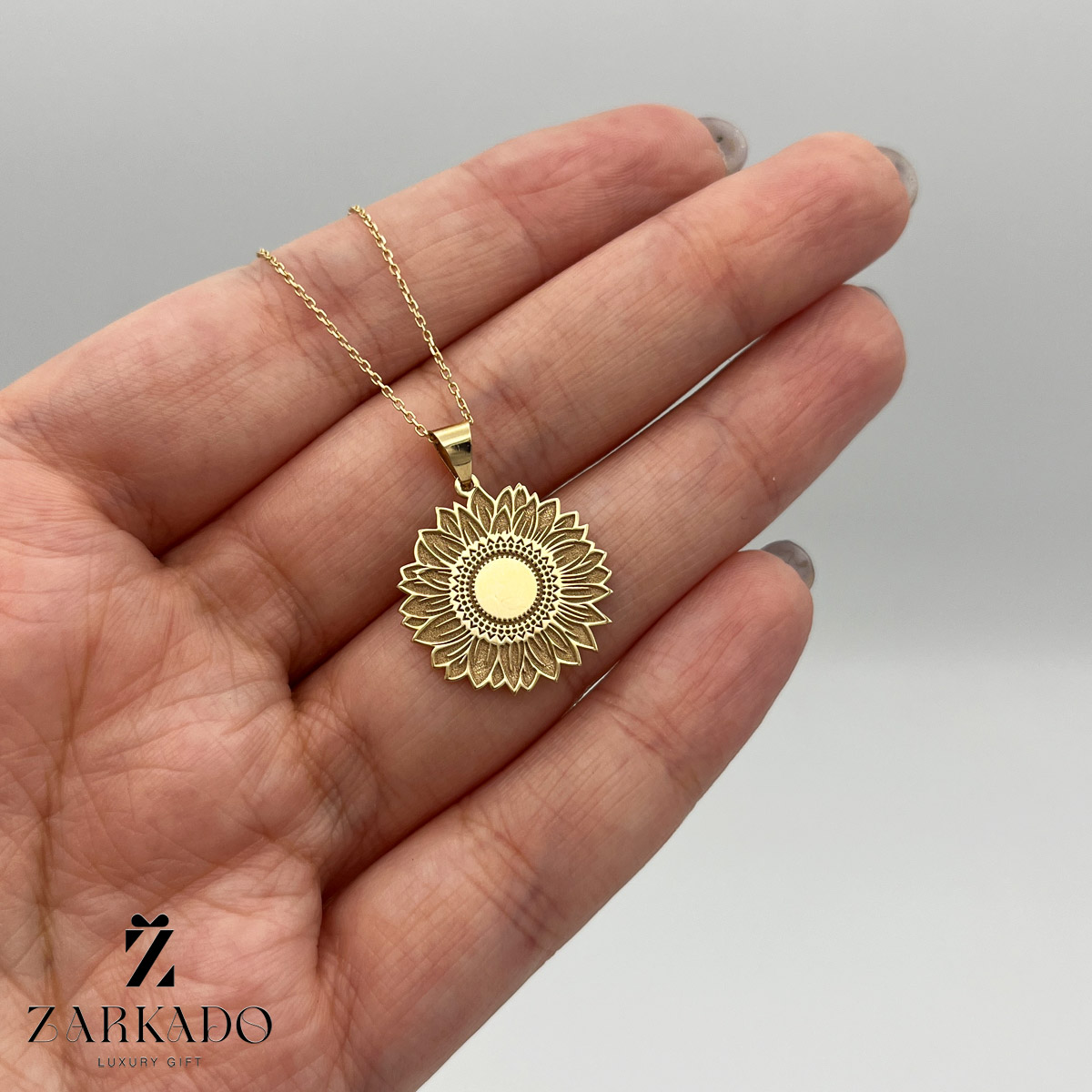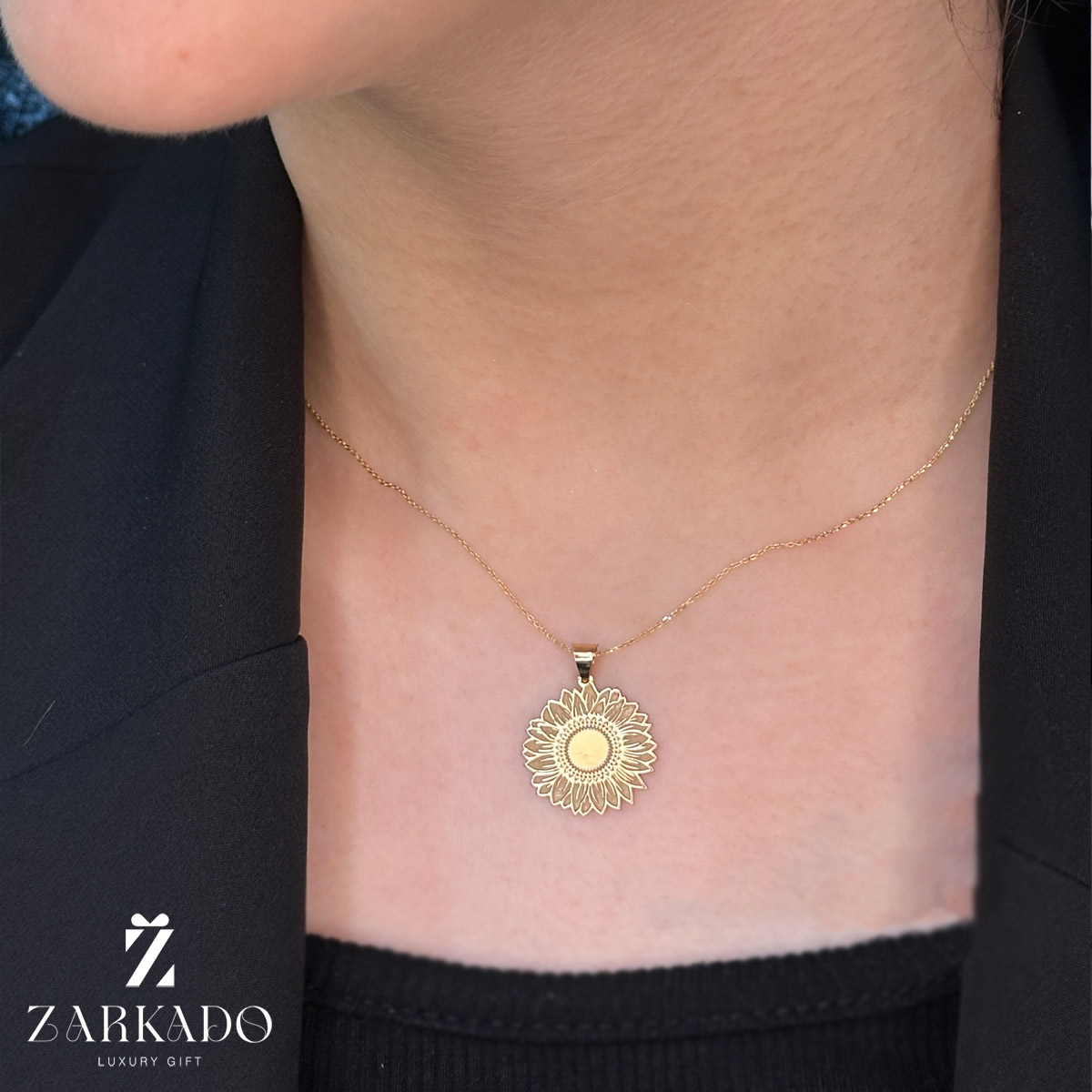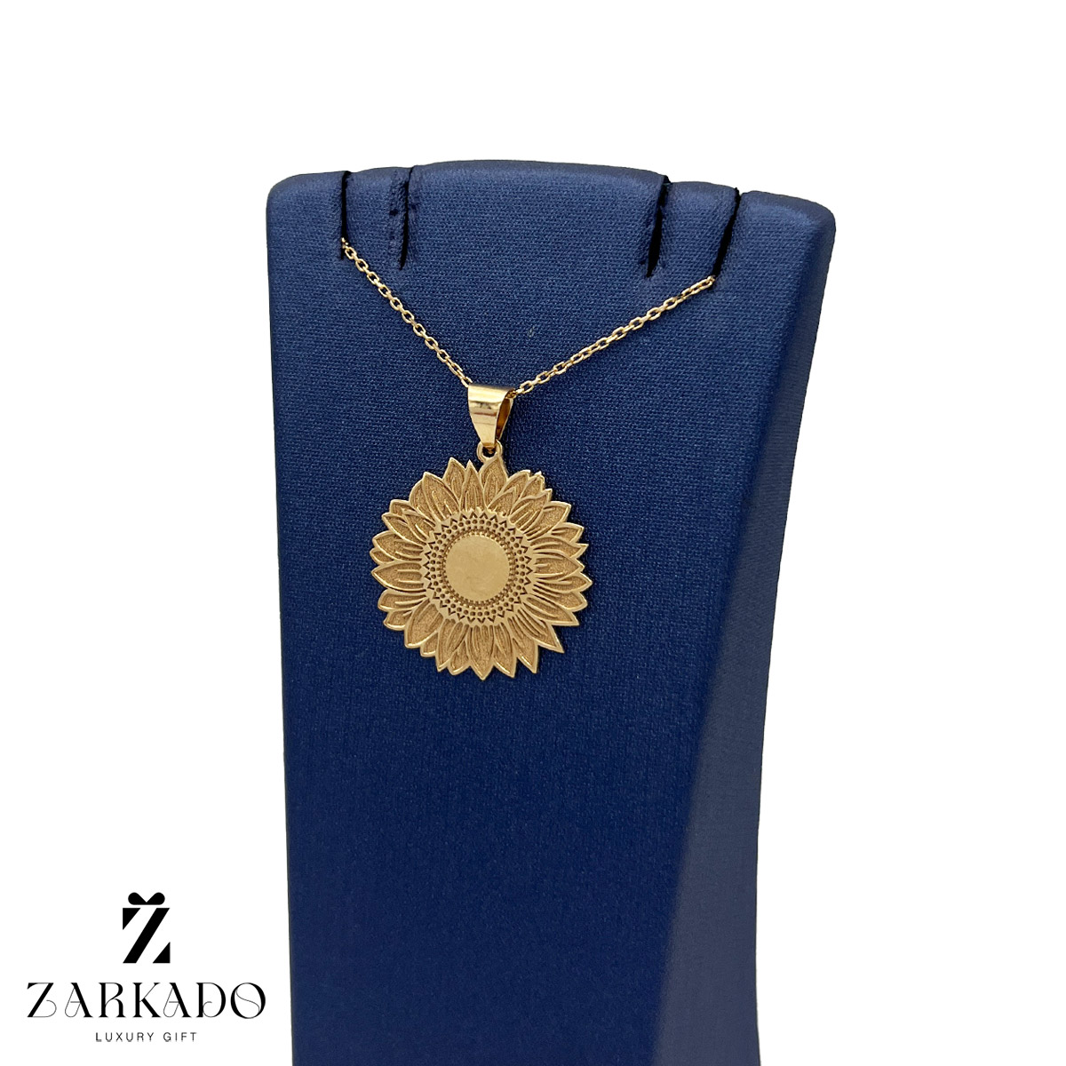 پلاک طرح گل آفتابگردون از جنس طلا 18 عیار میباشد