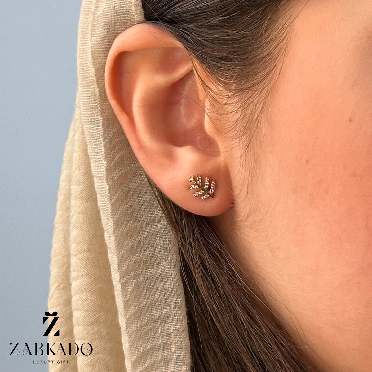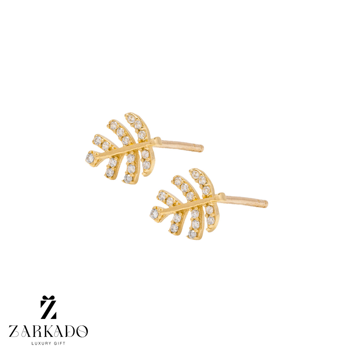 گوشواره میخی طلا برگ انجیری نگین دار کد E12841