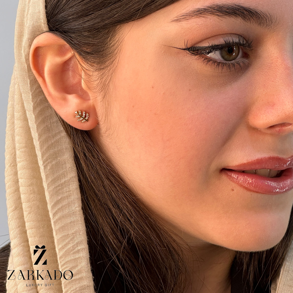 طرح گوشواره برگ انجیری که روی آن نگین های اتمی کار شده است