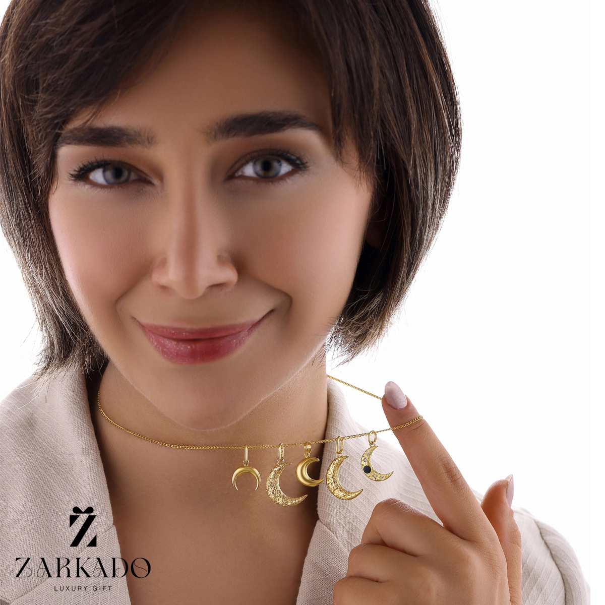 طرح پلاک هلال ماه میباشد که روی کار گودی های ماه بسیار ظریف کار شده و پلاک بسیار شیک و جذابی است