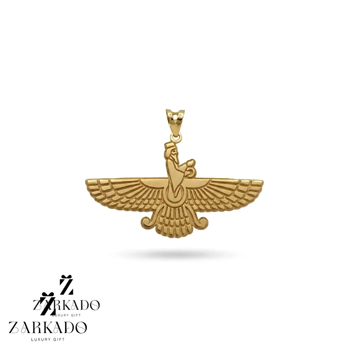 این پلاک طلا فروهر با الهام از یکی از کهنترین و اصیلترین نمادهای فرهنگ ایرانی طراحی شده و جلوهای عمیق از خرد، پایداری و هویت را به همراه دارد. در این محصول از طلای زرد ۱۸ عیار استفاده شده و پرداخت براق آن در کنار کار برجسته و پرجزئیات، ظاهری چشمنواز و ارزشمند ایجاد کرده است.