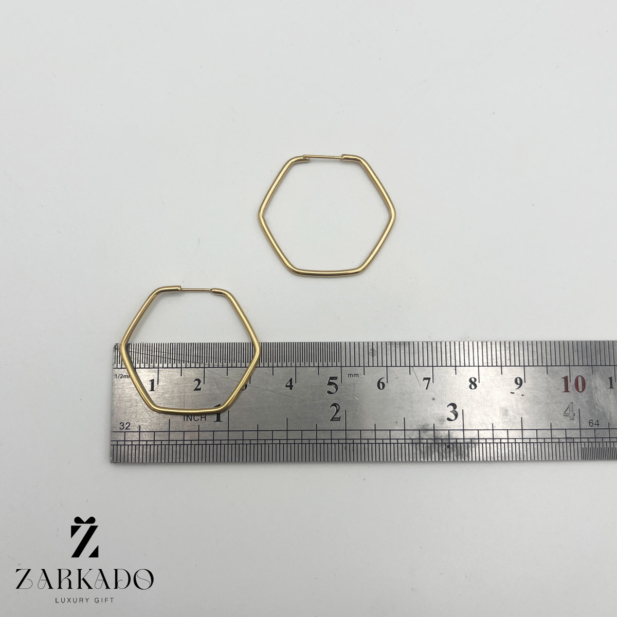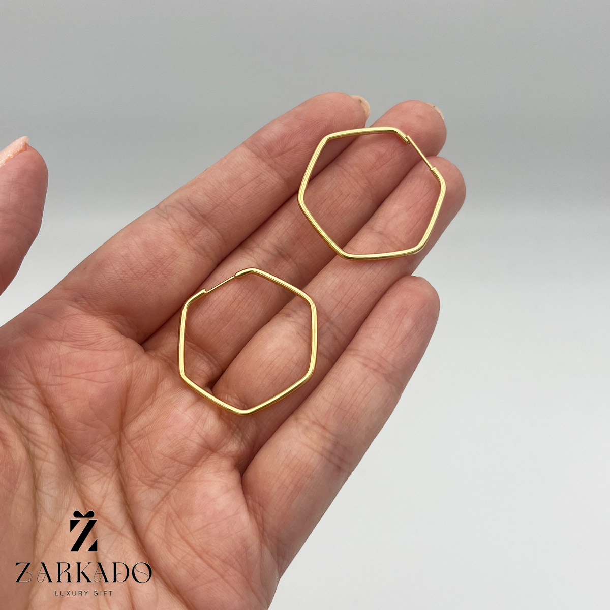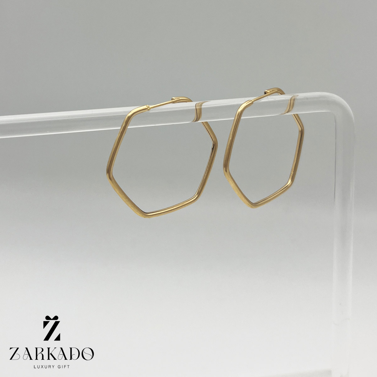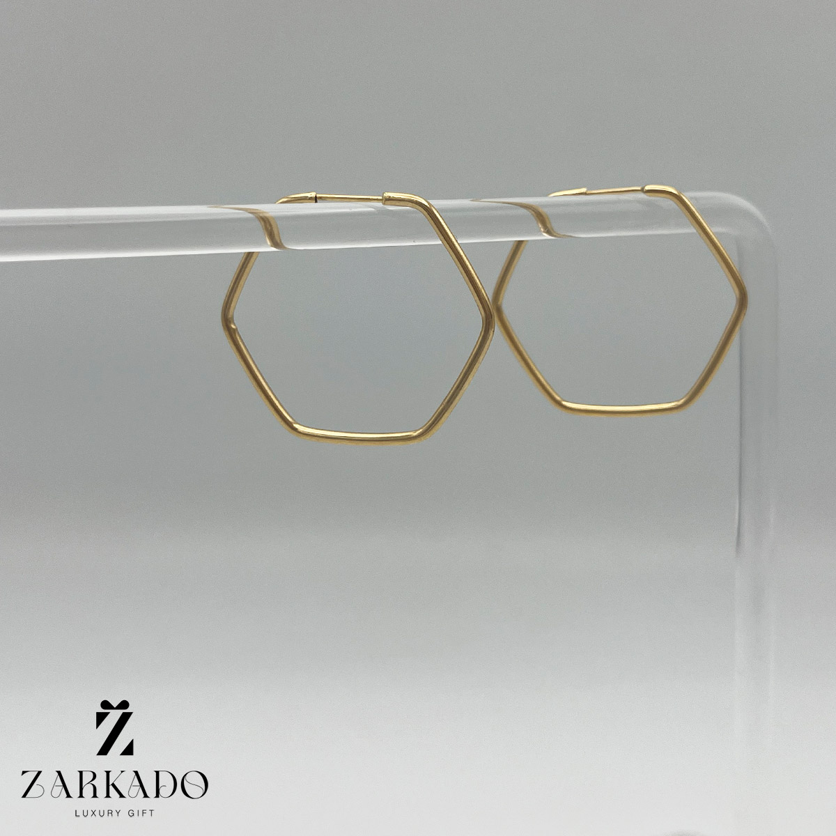 گوشواره حلقه ای شش ضلعی از جنس طلای 18 عیار میباشد.