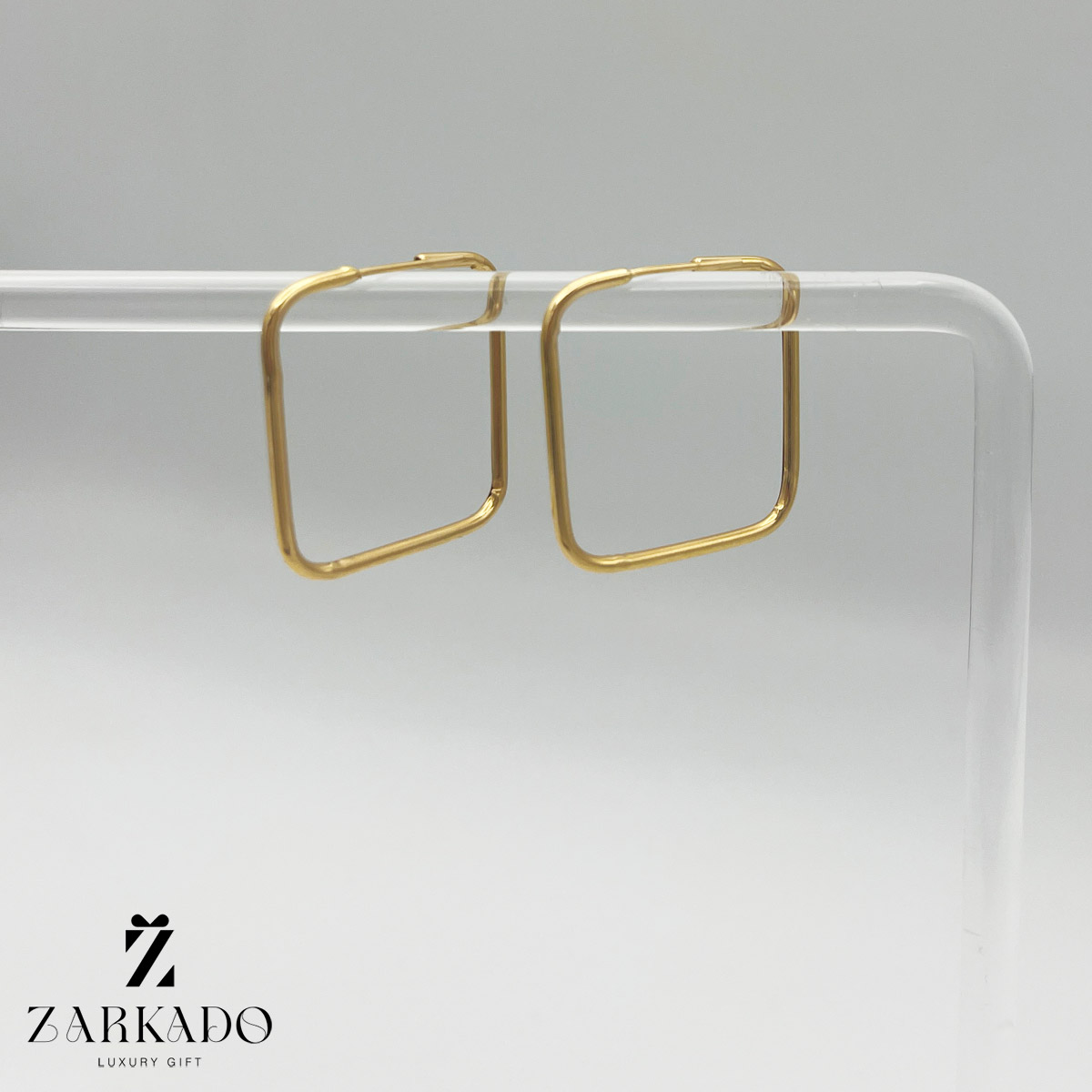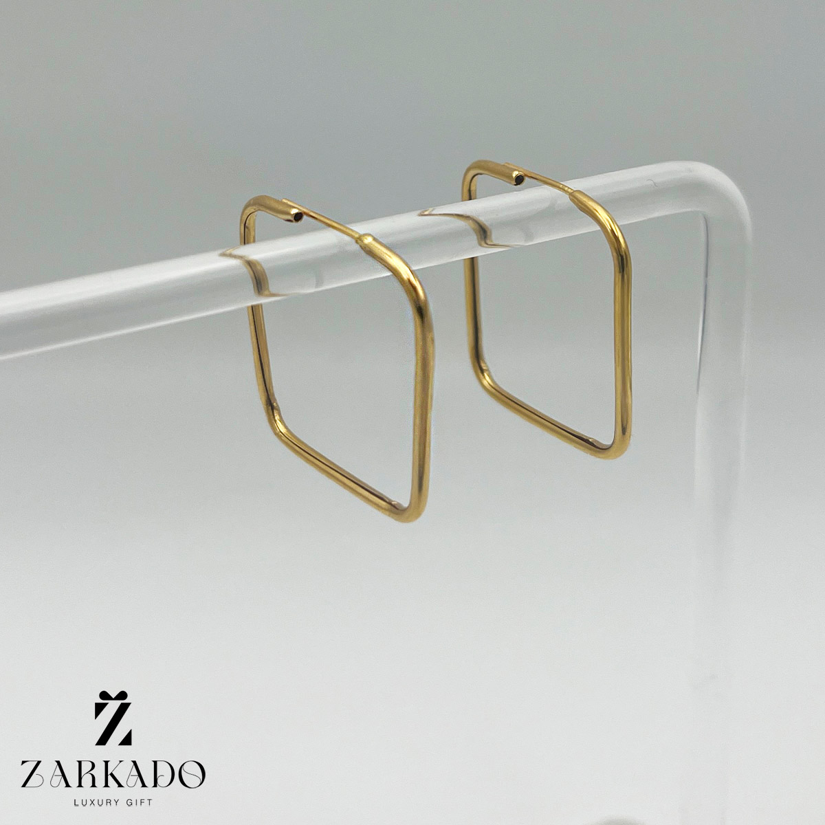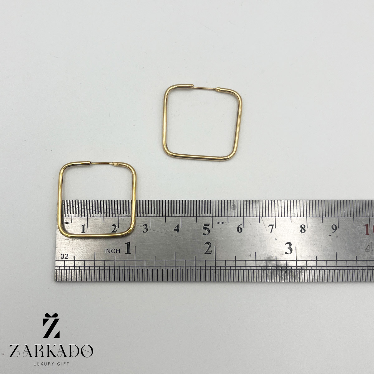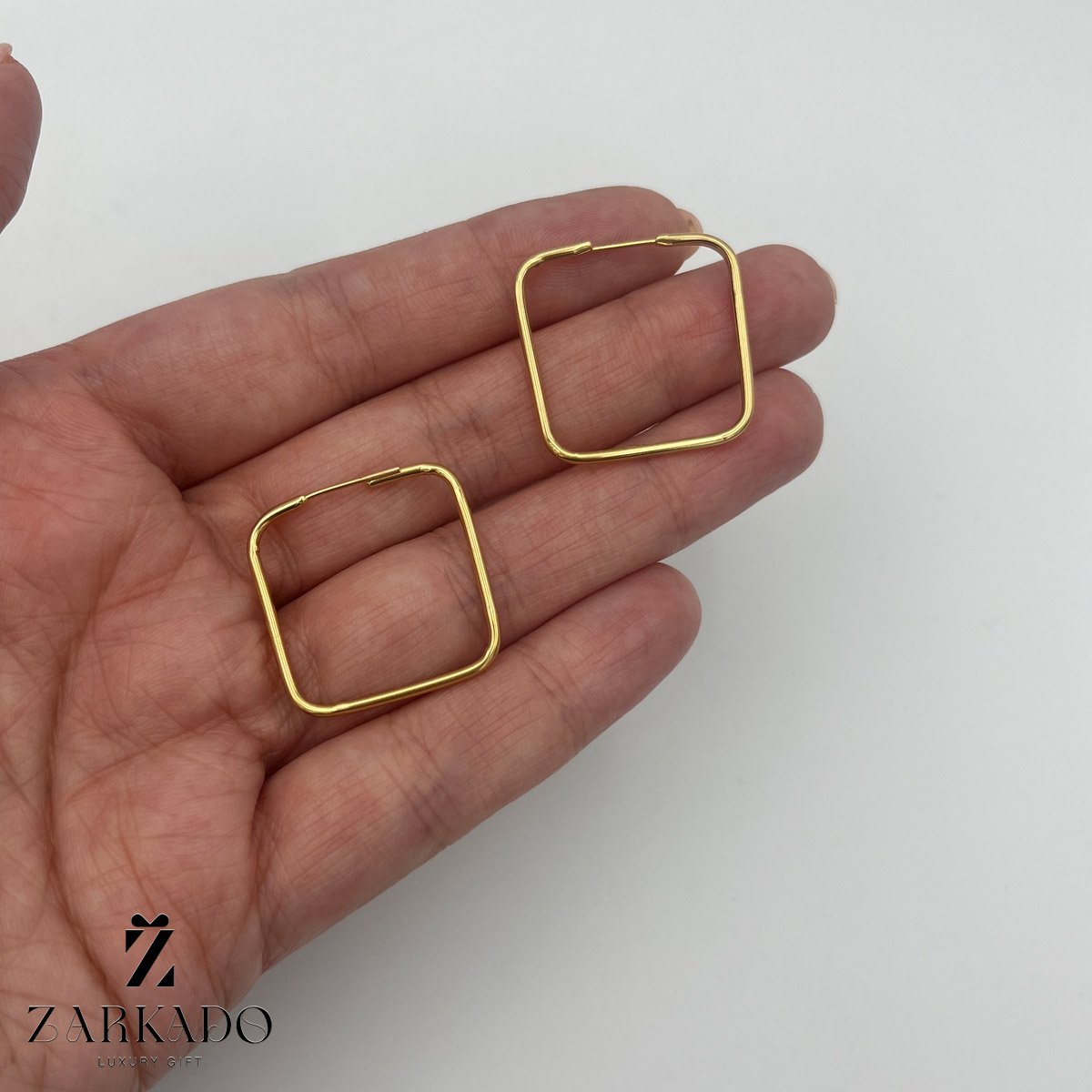 گوشواره حلقه ای مربع از جنس طلای 18 عیار میباشد.