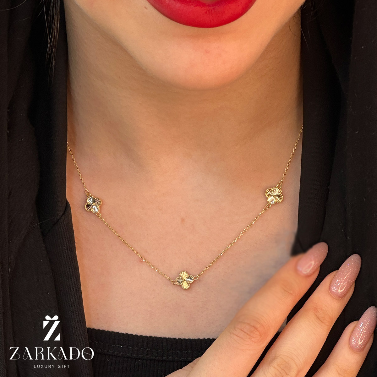 گردنبند طلا ونکلیف تراشدار سه تایی سایز 1