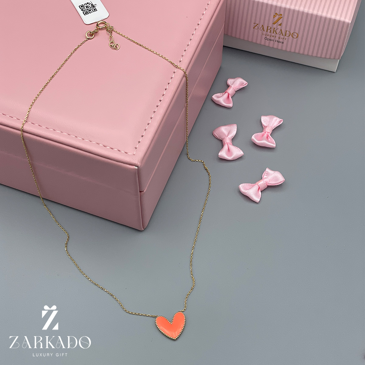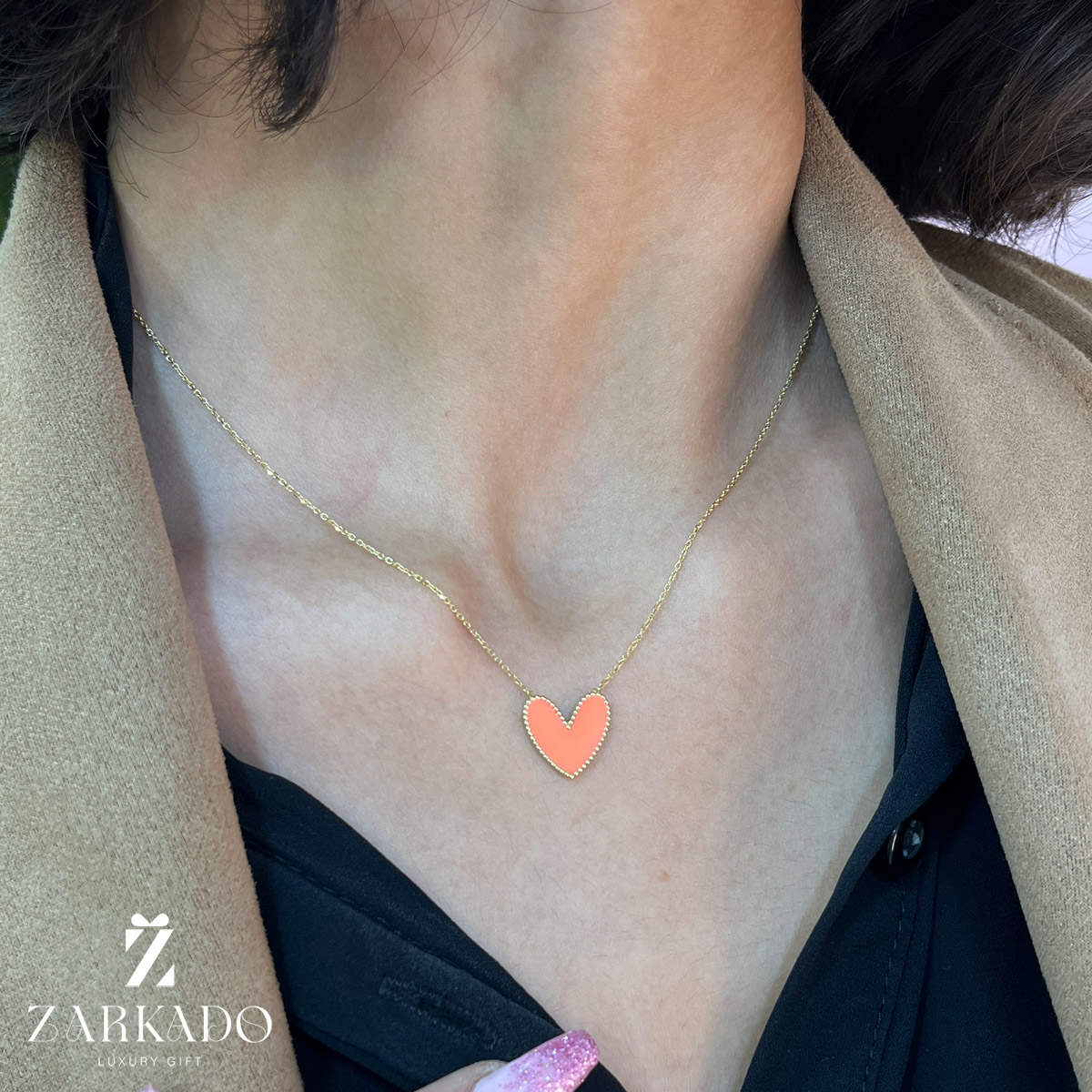 گردنبند زنجیری طلا طرح قلب میناکاری نارنجی کد N19
