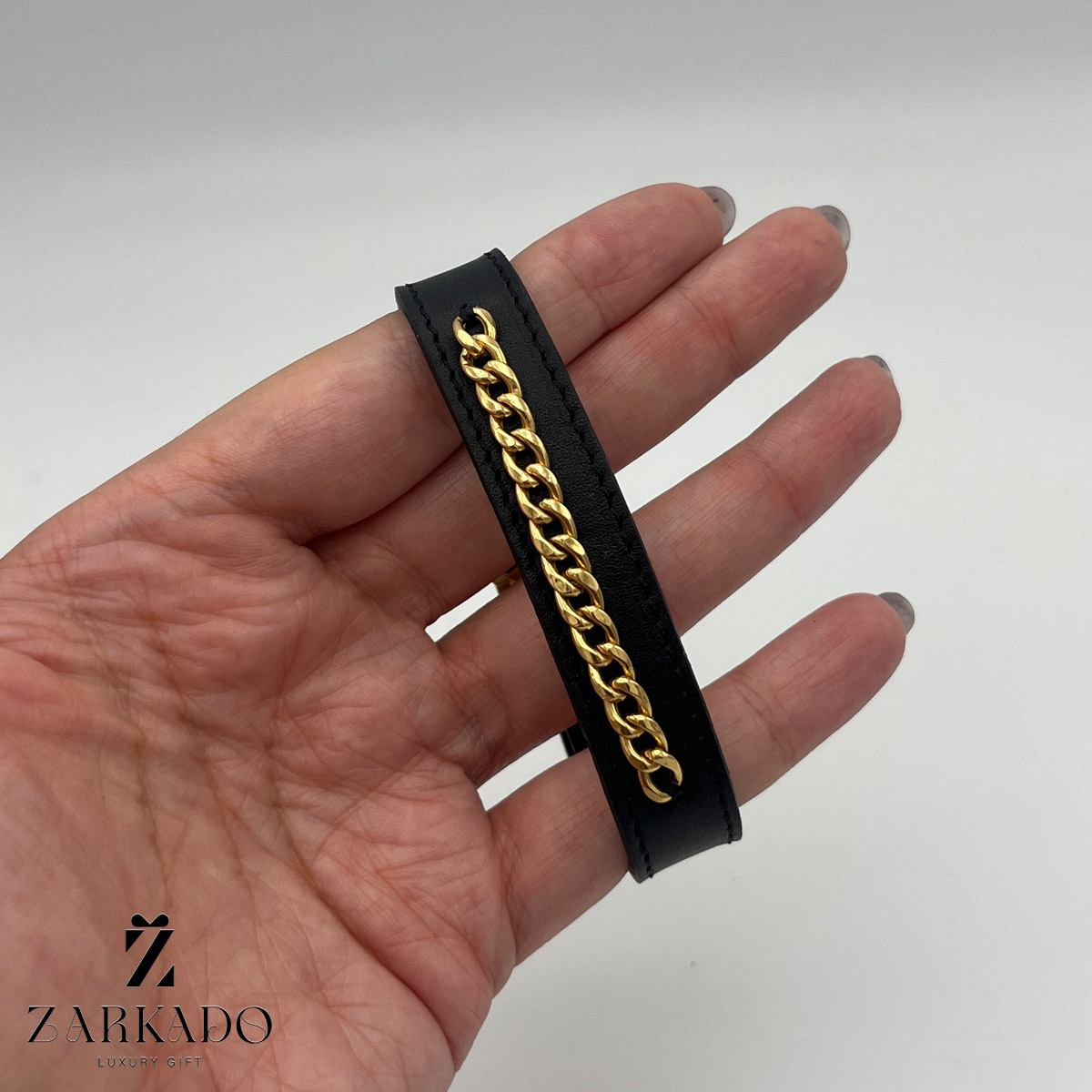 دستبند چرمی دارای پلاک طلا 18 عیار کارتیه میباشد