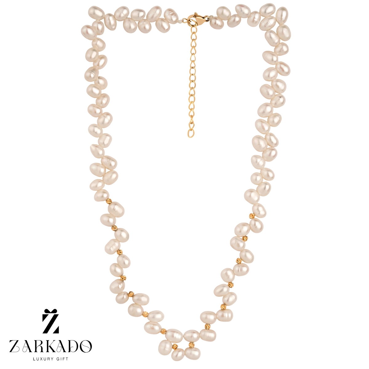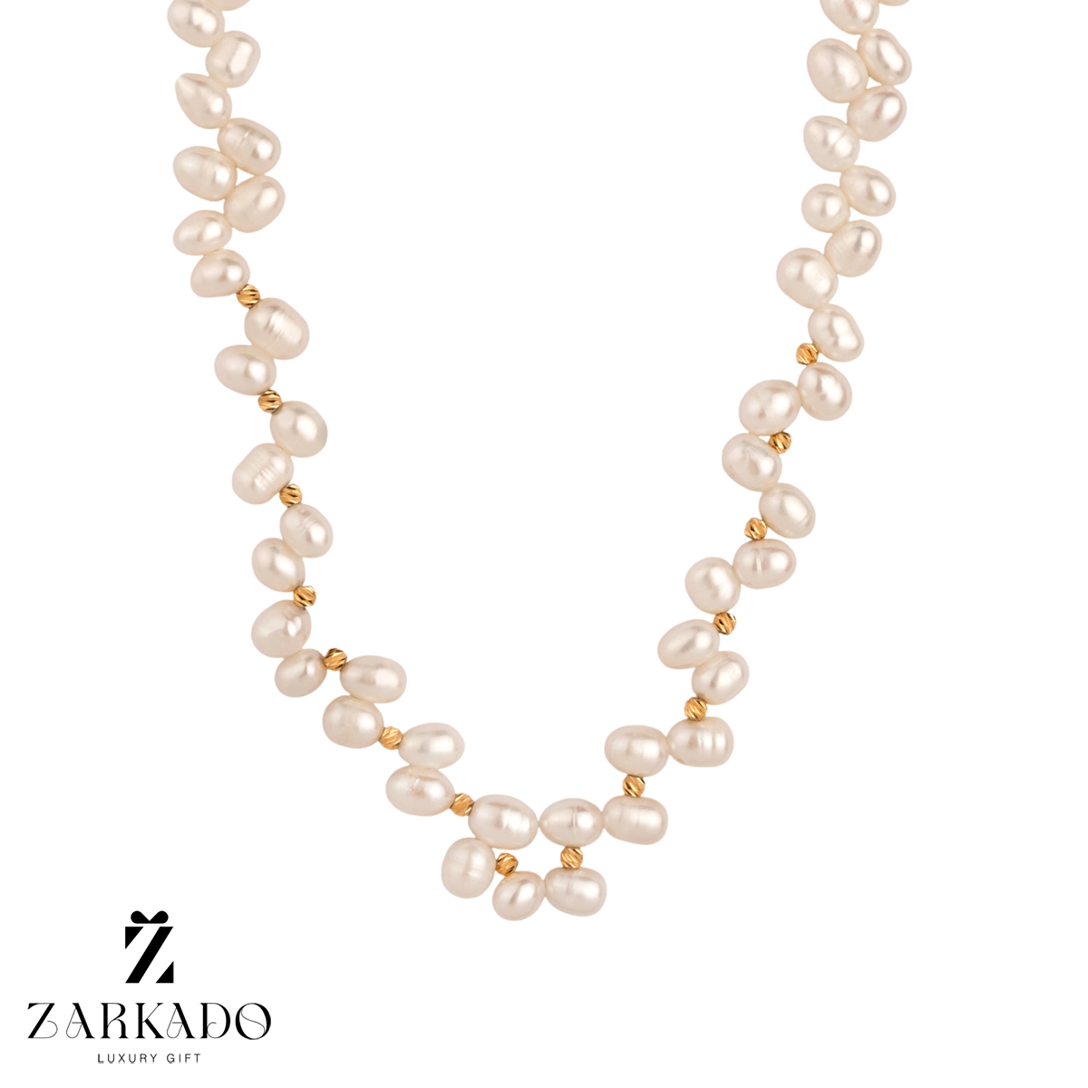 این گردنبند دستساز با مرواریدهای پرورشی ریز مدل گندمی طراحی شده است که به دلیل زیبایی و سبک خاص، بسیار پرطرفدار است.