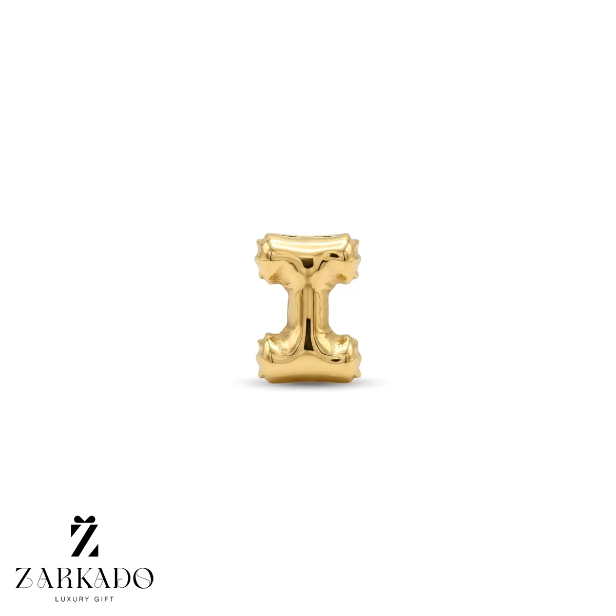 • این پلاک طلا با فرم حرف I و طراحی بادکنکی ساخته شده است؛ ساختاری حجمی با لبههای گرد و نرم که ظاهر آن مشابه فرم حروف بادکنکی در طراحی مدرن زیورآلات طلا شکل گرفته است ✨