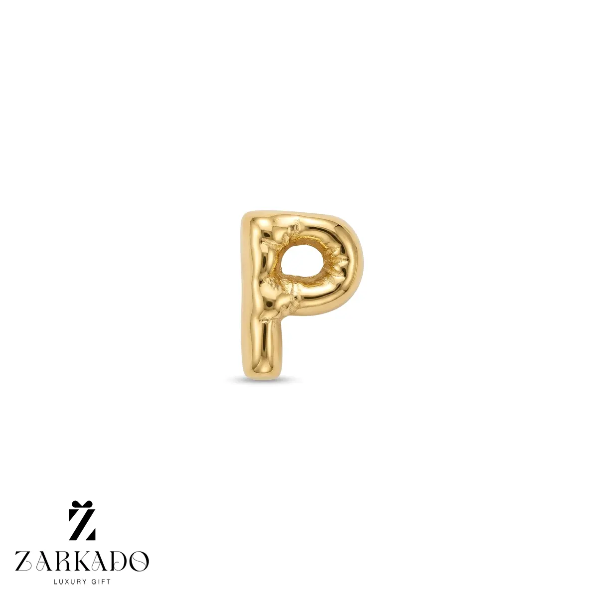 • این پلاک طلا با فرم حرف P و طراحی بادکنکی ساخته شده است؛ ساختاری حجمی با لبههای گرد و نرم که ظاهر آن الهامگرفته از فرم حروف بادکنکی در طراحی مدرن زیورآلات طلا است ✨