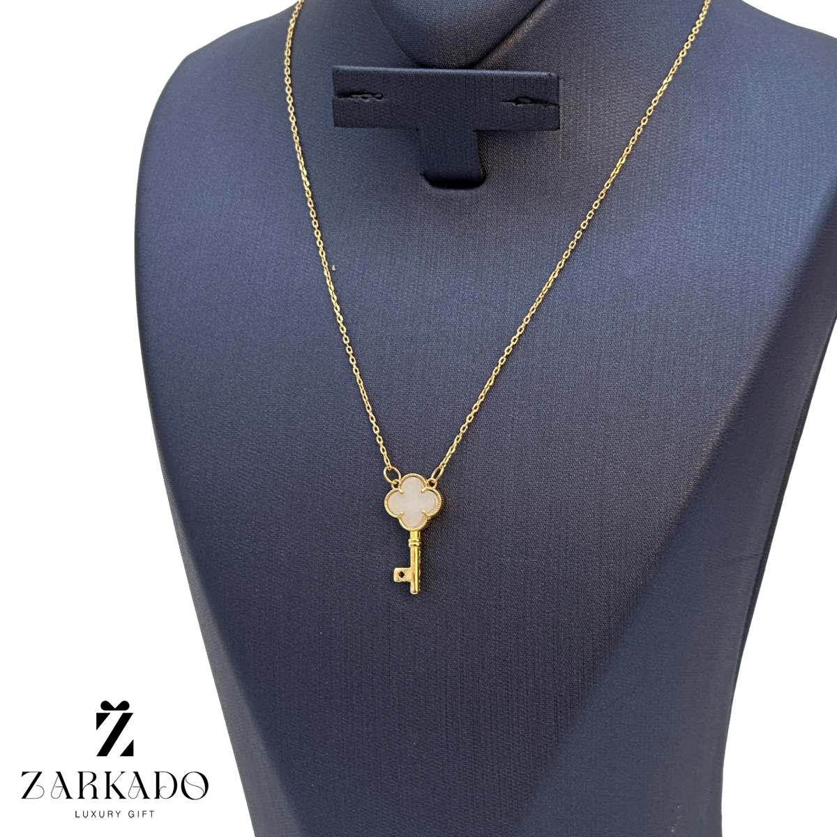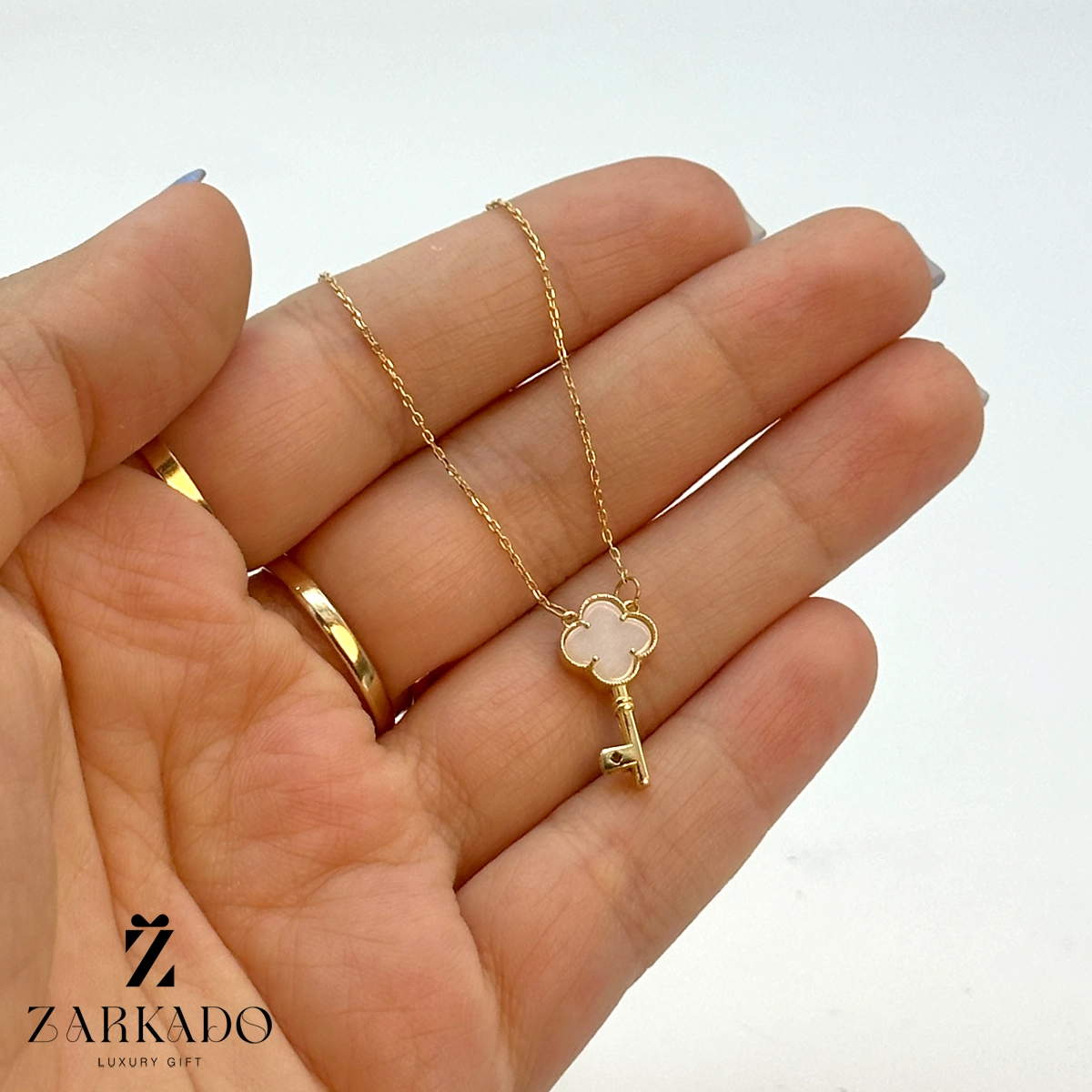 گردنبند دارای زنجیر فلامینگو که به آن پلاک طرح کلید ونکلیف متصل است