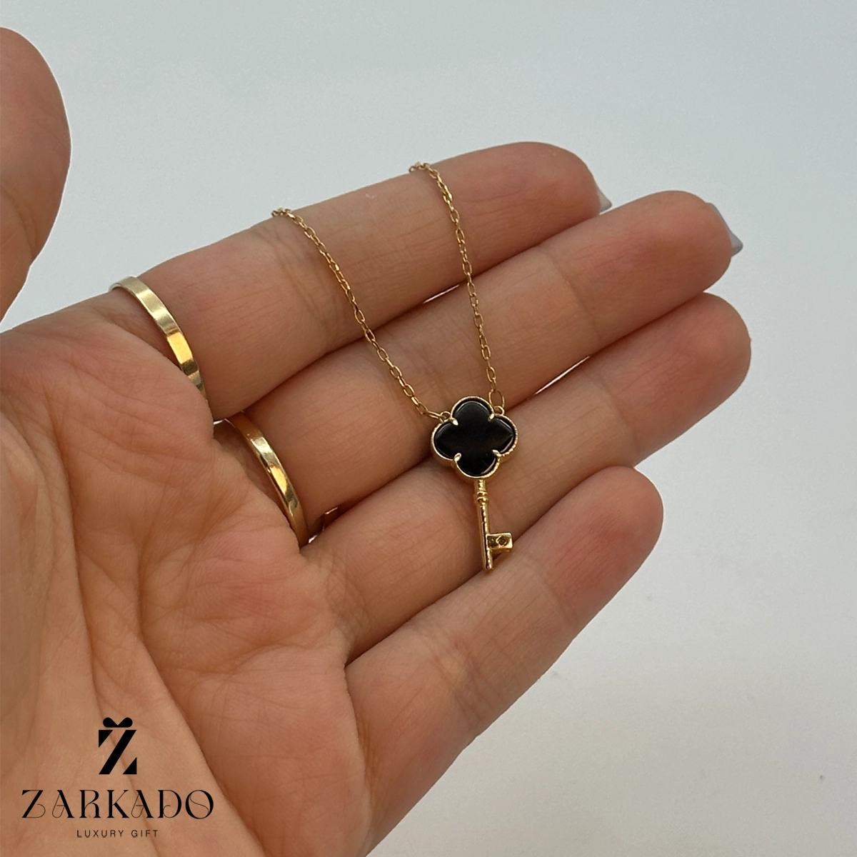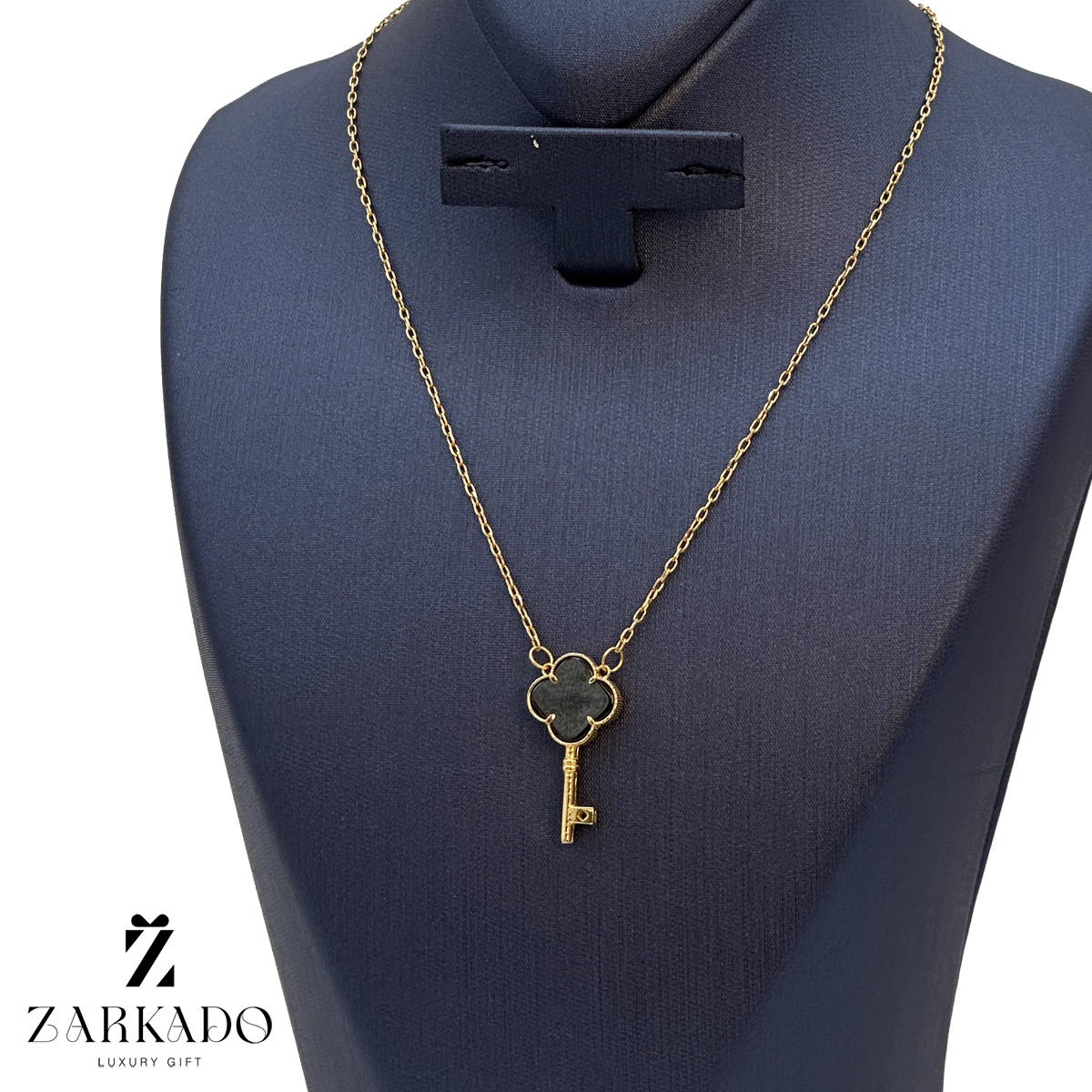 گردنبند دارای زنجیر فلامینگو که به آن پلاک طرح کلید ونکلیف متصل است