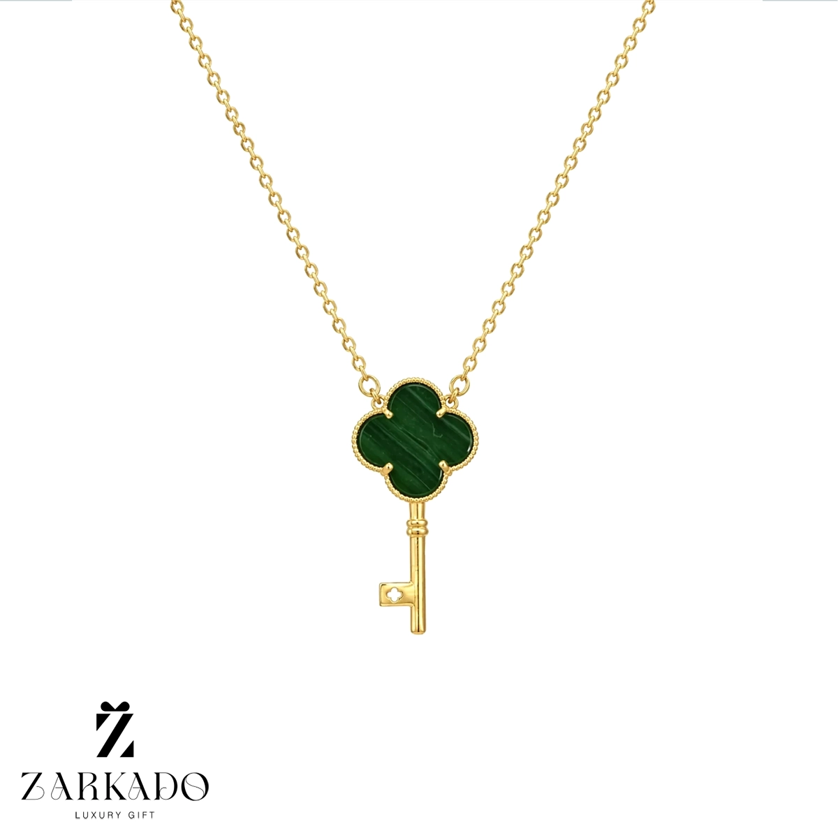 گردنبند دارای زنجیر فلامینگو که به آن پلاک طرح کلید ونکلیف متصل است