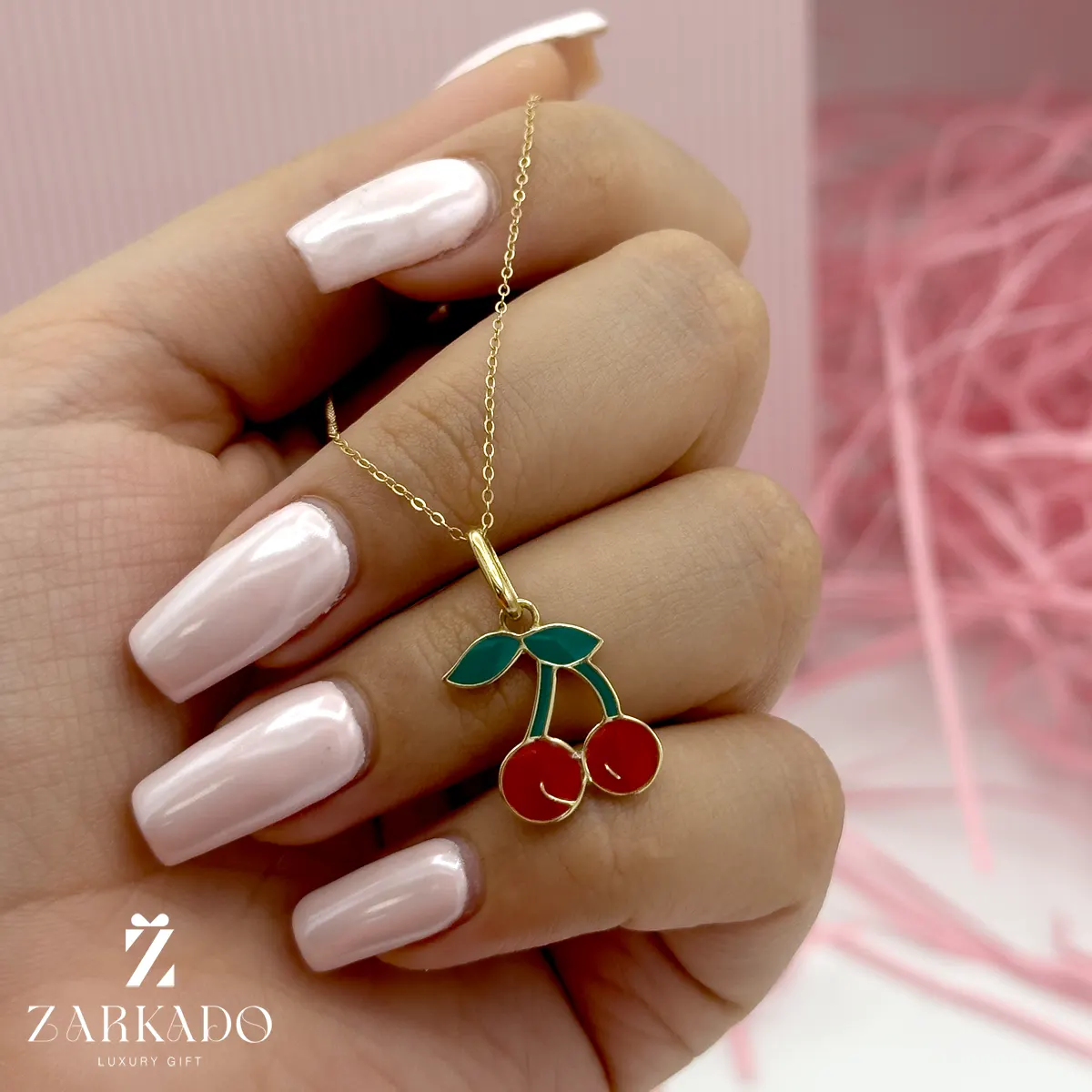 پلاک آلبالو از جنس طلای 18 عیار است.