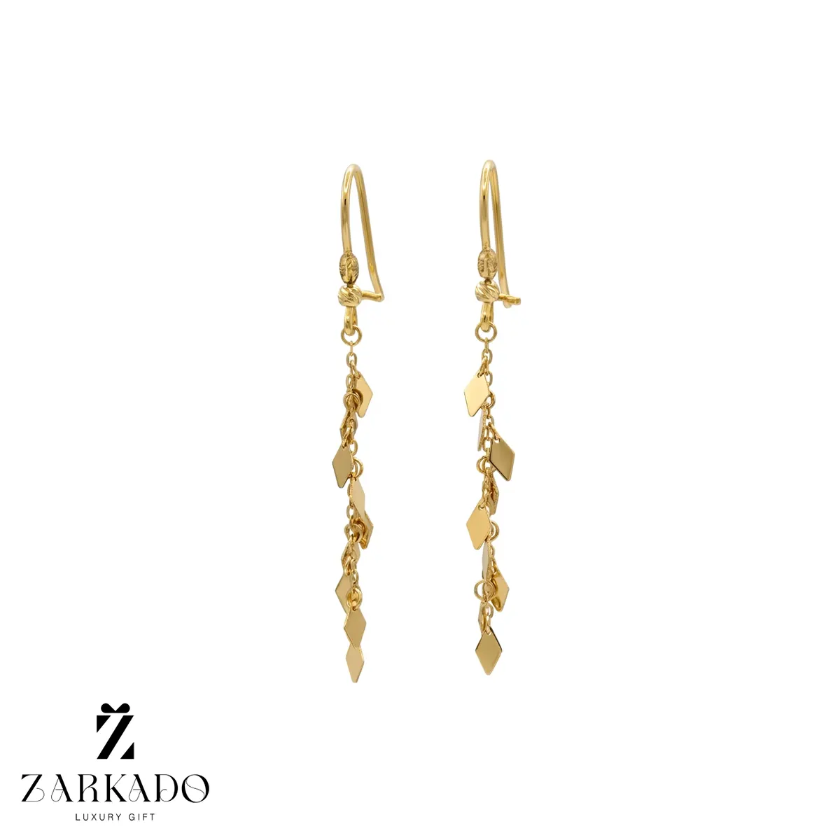 گوشواره آویز طلا طرح لیزری لوزی با قفل عصایی میباشد که بسیار شیک و ترند میباشد