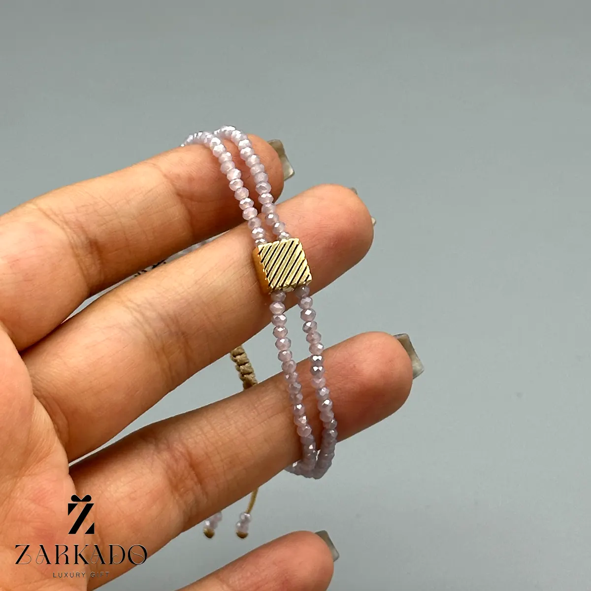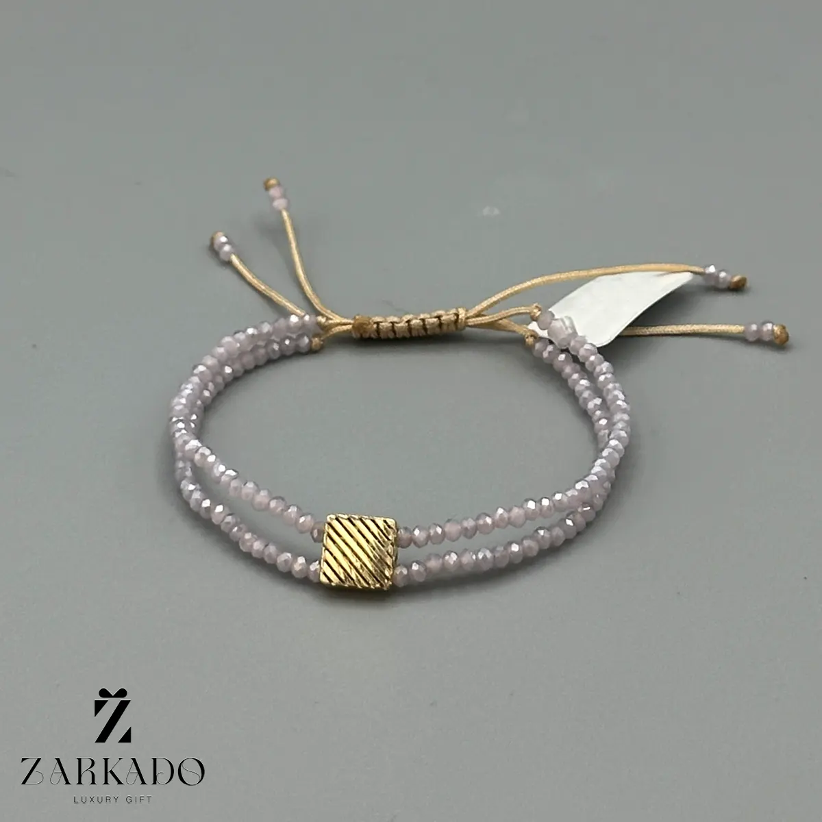 دستبند سنگی و طلا طرح مربع با سنگ دوبل