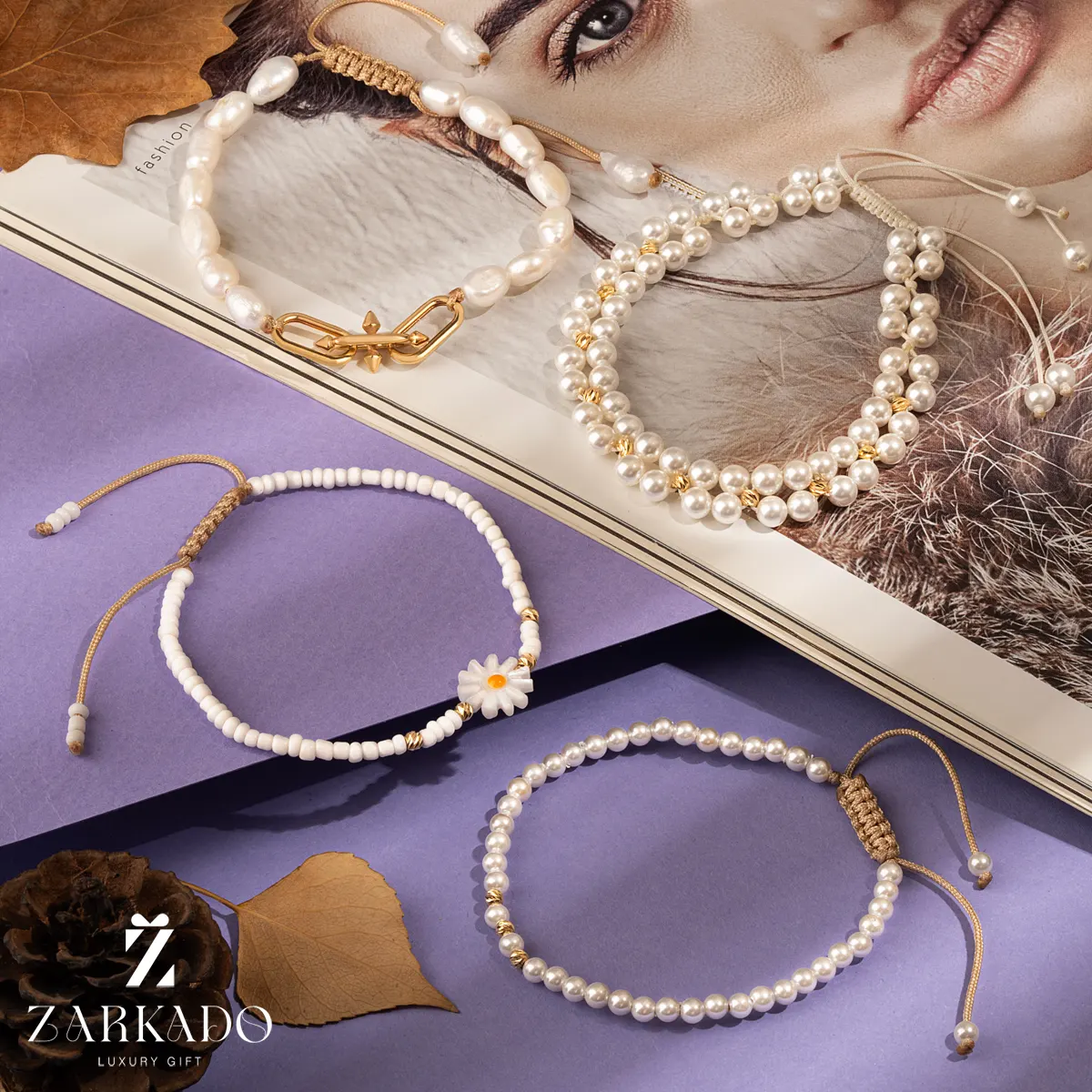دستبند میوکی و گوی طلا طرح گل بابونه