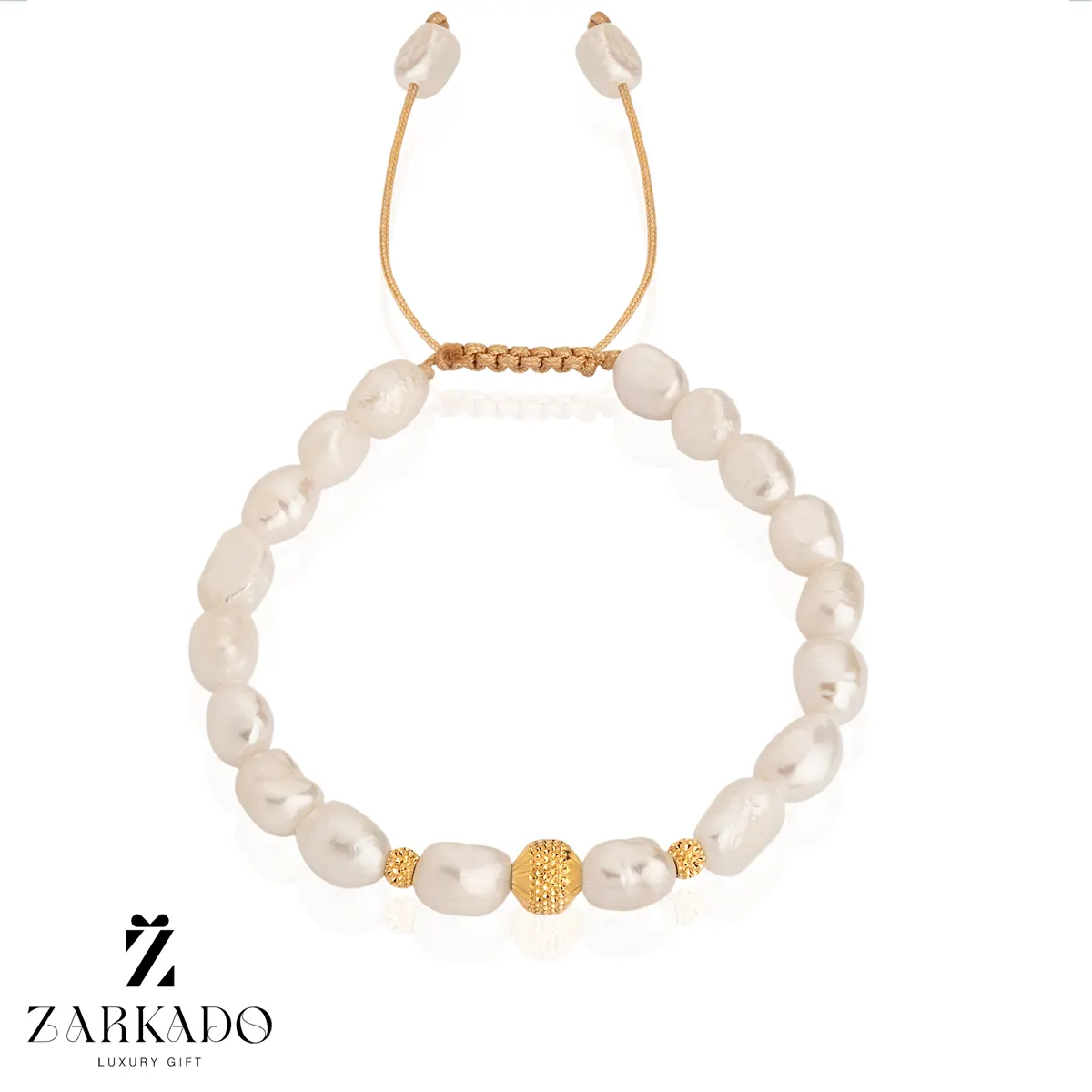 دستبند مروارید پرورشی و گوی طلا چکشی