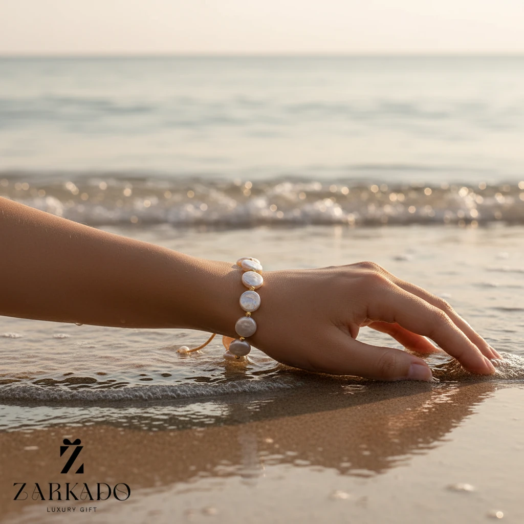 مرواریدهای باروک به دلیل شکلهای نامنظم و غیرکروی خود، هر دستبند را منحصر به فرد و خاص میکنند و جلوهای خلاقانه و لوکس به آن میدهند.