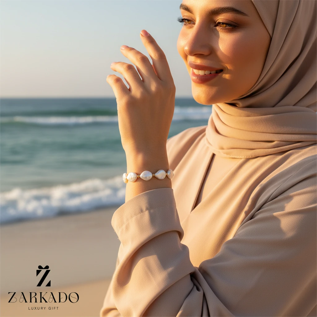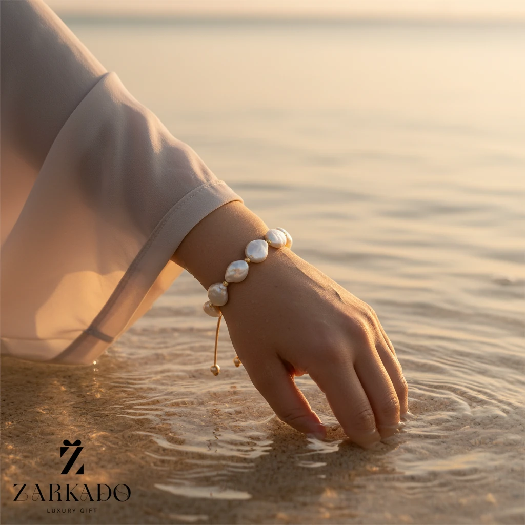 مرواریدهای باروک به دلیل شکل‌های نامنظم و غیرکروی خود، هر دستبند را منحصر به فرد و خاص می‌کنند و جلوه‌ای خلاقانه و لوکس به آن می‌دهند.