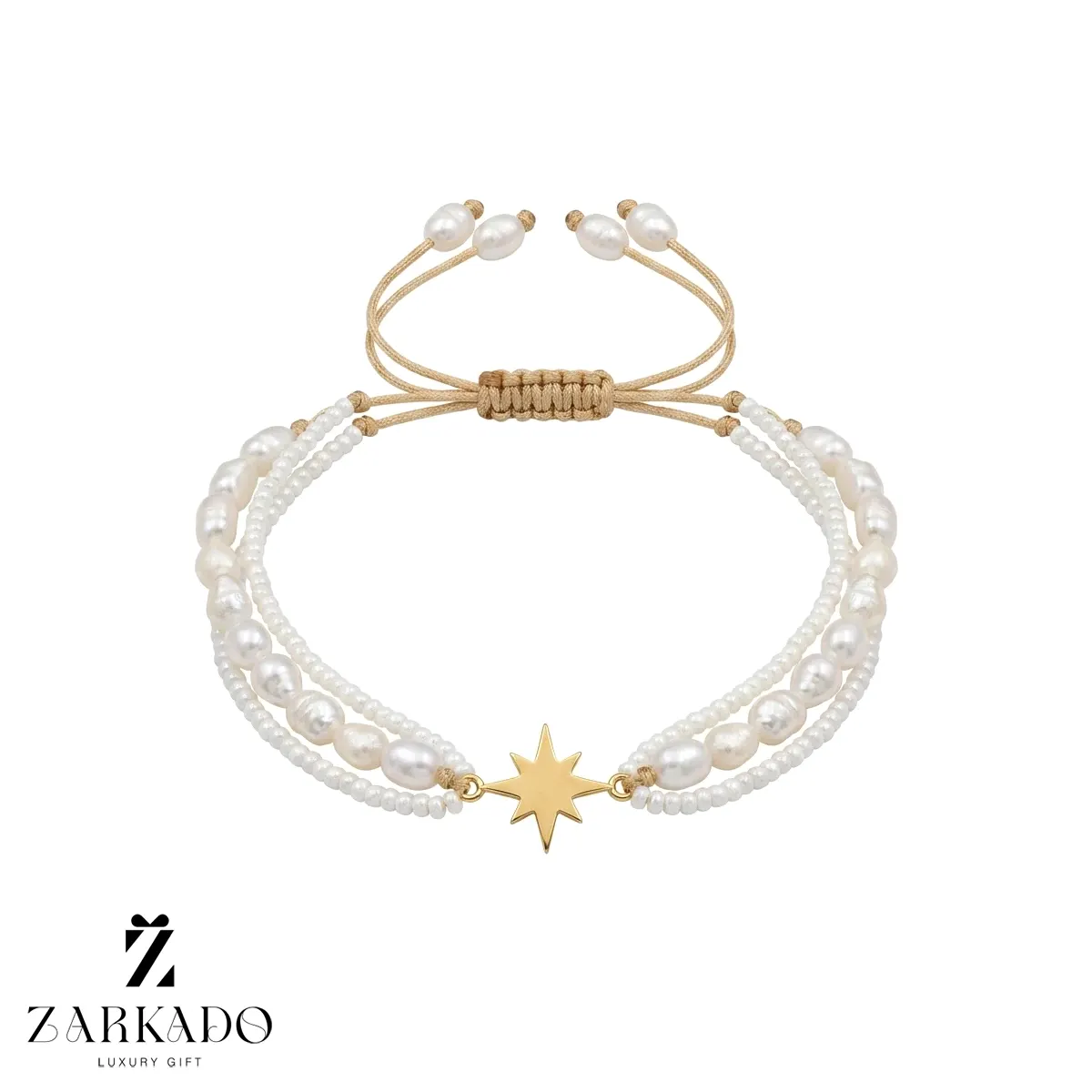 • بند دستبند بهصورت بافت قابل تنظیم طراحی شده و در انتهای آن مرواریدهای کوچک قرار دارد که امکان تنظیم سایز دستبند برای اندازههای مختلف مچ را فراهم میکند 🎁
