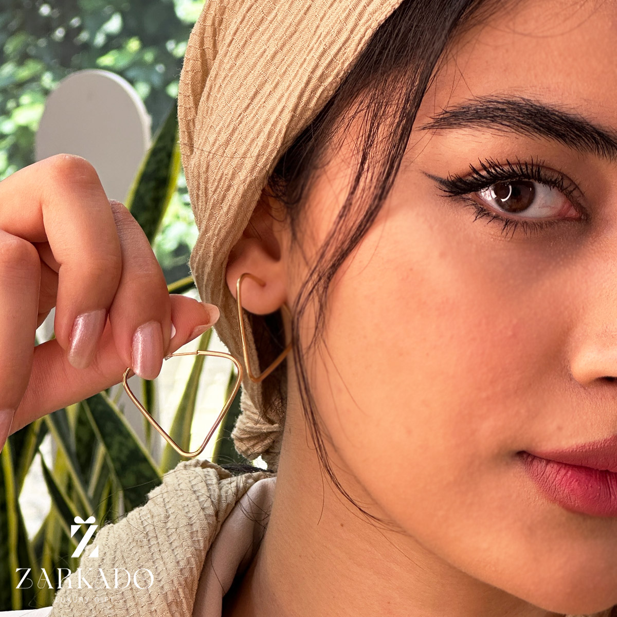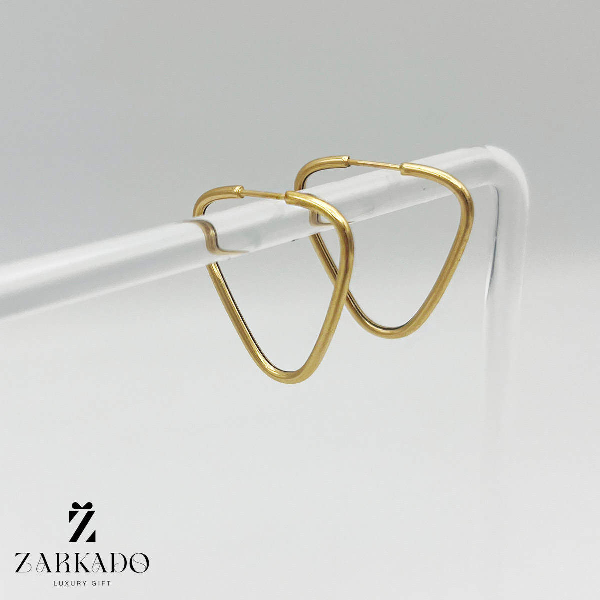 گوشواره حلقه ای مثلث از جنس طلای 18 عیار میباشد.