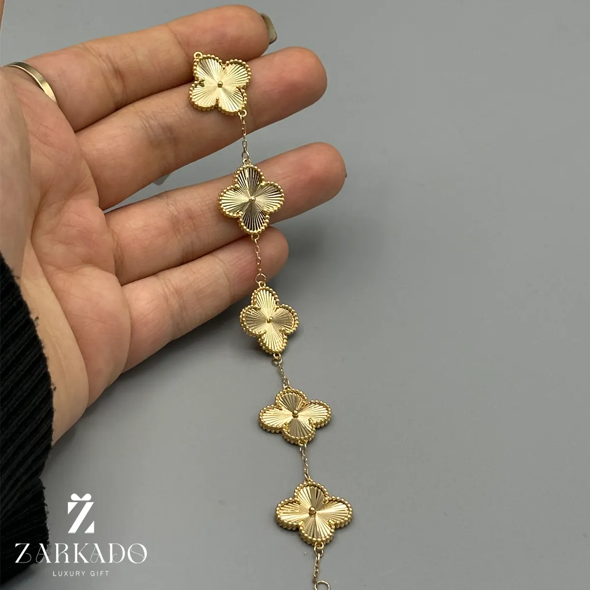 دستبند با زنجیر فلامینگو داری سه پلاک ونکلیف تراشدار میباشد که جلوه زیبایی به کار میدهد