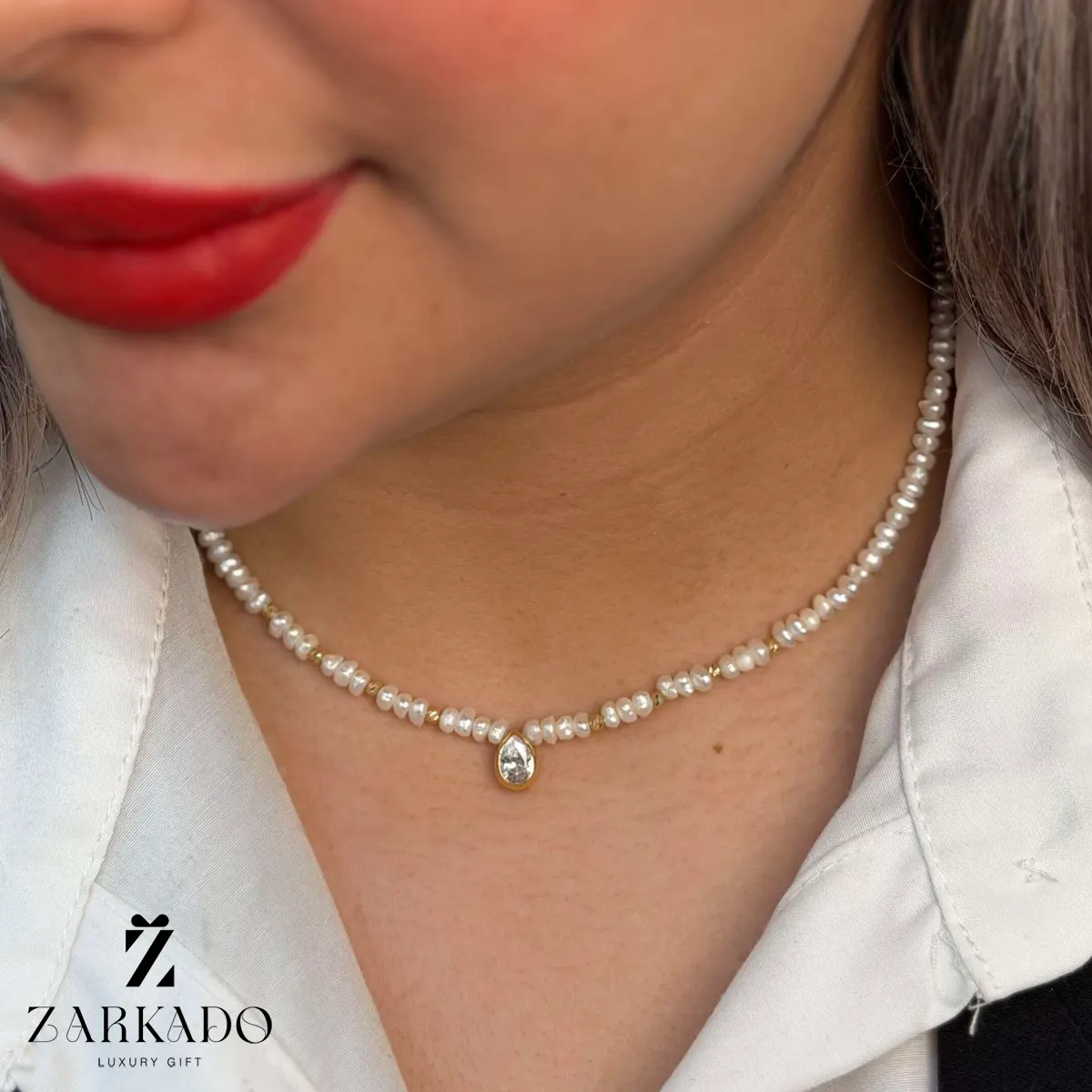 • این گردنبند از ردیفی از مرواریدهای سفید با فرم طبیعی و سطح براق تشکیل شده که در کنار یکدیگر ساختاری منظم و کلاسیک ایجاد کردهاند ✨