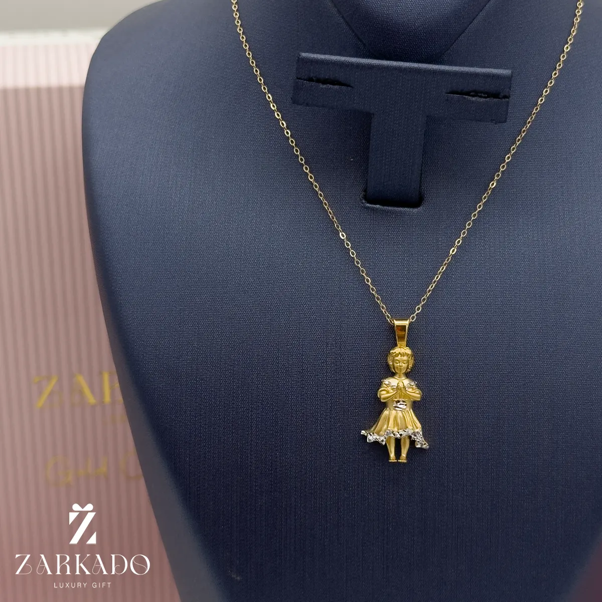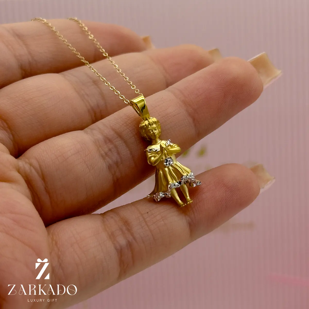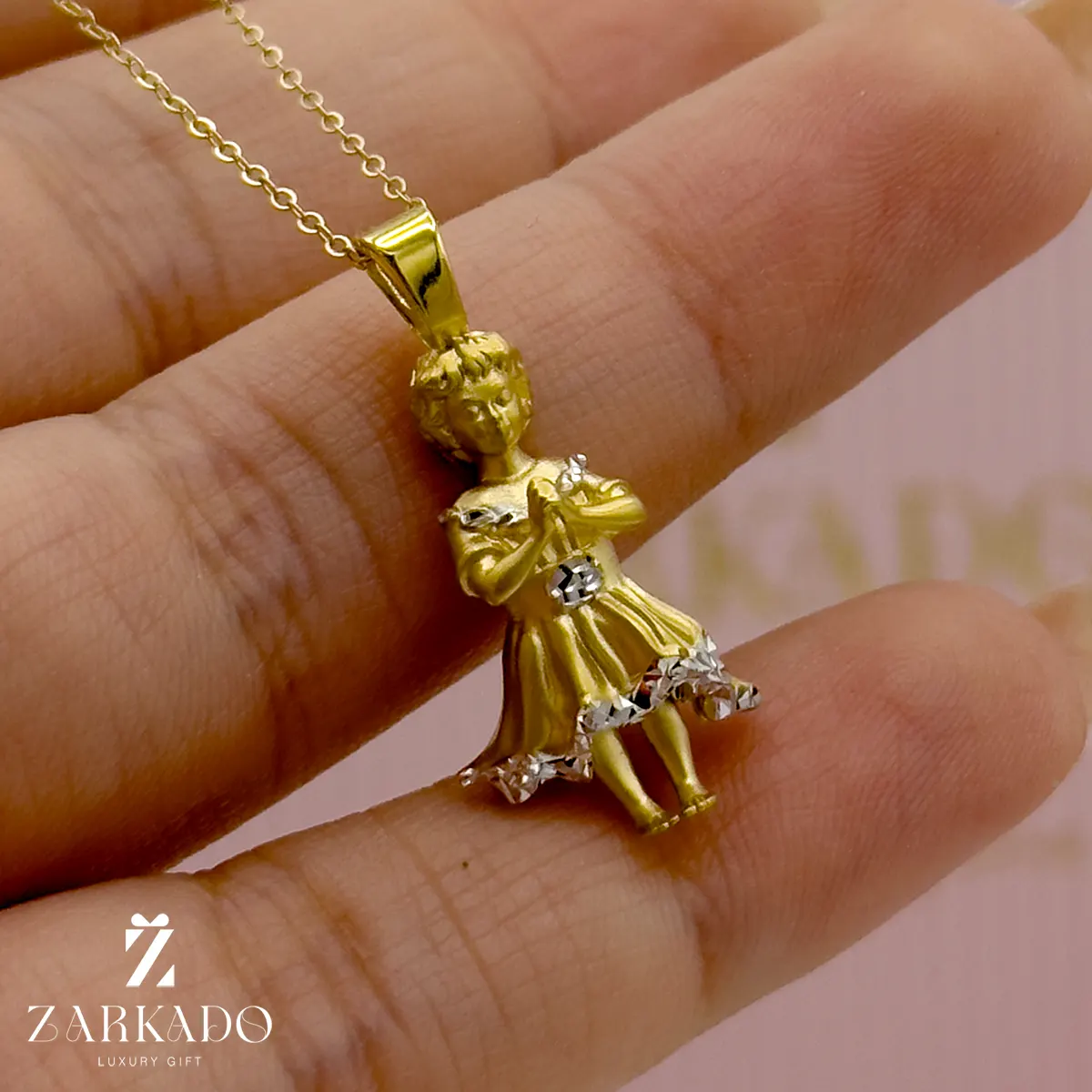 پلاک عروسک چینی از جنس طلای 18 عیار است.