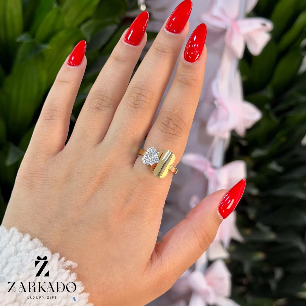 💛 انگشتر قلبی طلا ۱۸ عیار با طراحی مدرن و خلاقانه، ترکیبی از عشق، سادگی و جسارت در طراحی است؛ انتخابی ایدهآل برای بانوانی که به زیورآلات خاص و متفاوت علاقهمند هستند.