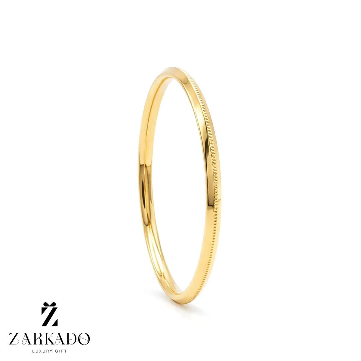 این النگوی طلای ۱۸ عیار با رنگ زرد درخشان، جلوهای کلاسیک و قابل اعتماد دارد که بهصورت کاملاً صاف و صیقلی ساخته شده است.