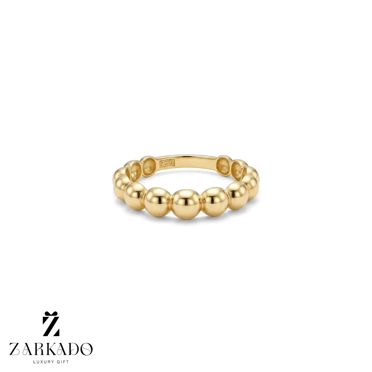 این انگشتر زنانه از طلای ۱۸ عیار ساخته شده و با چیدمان منظم گویهای صیقلی، طراحی توپ توپی کلاسیک و پرطرفداری را ارائه میدهد ✨