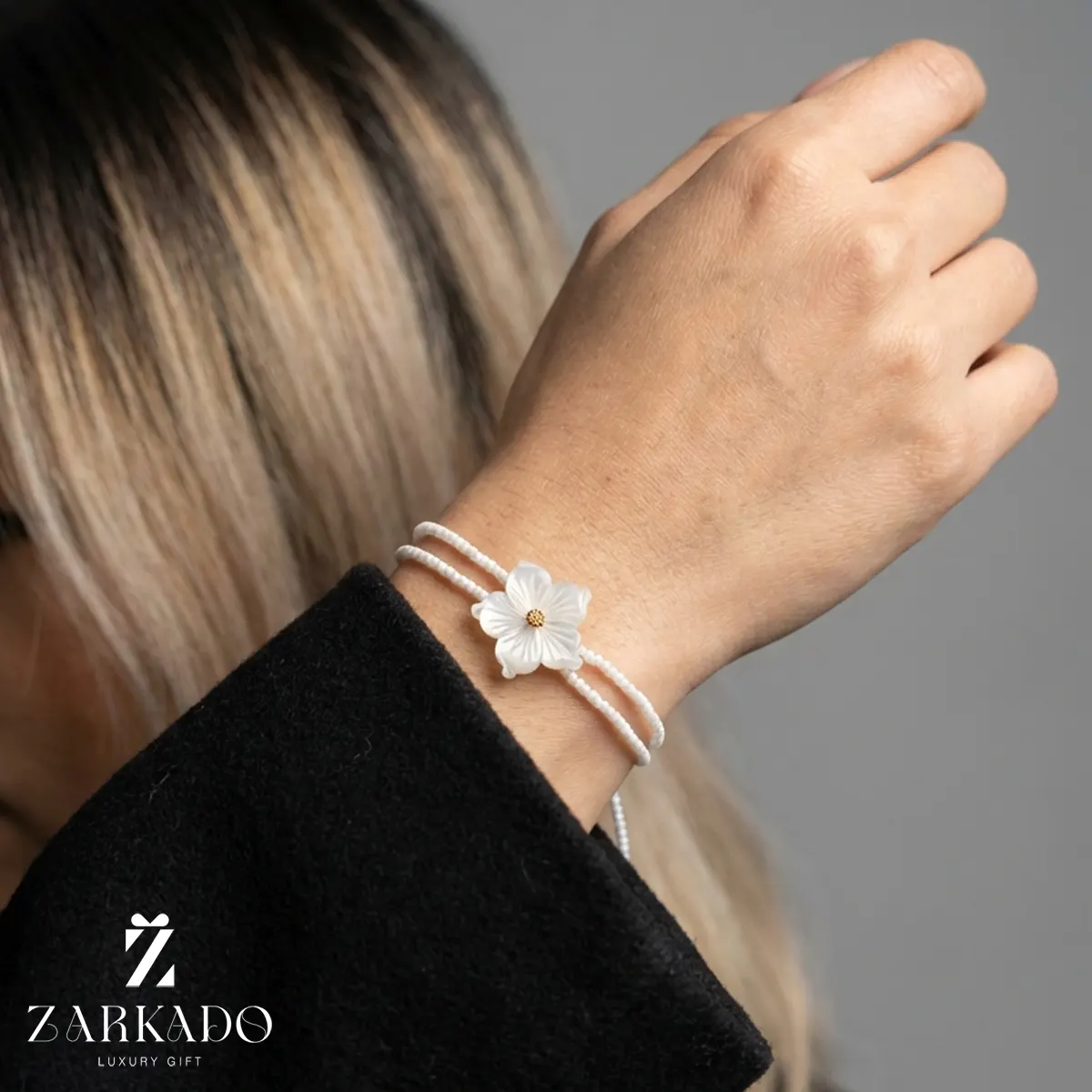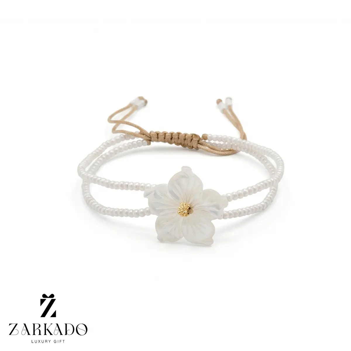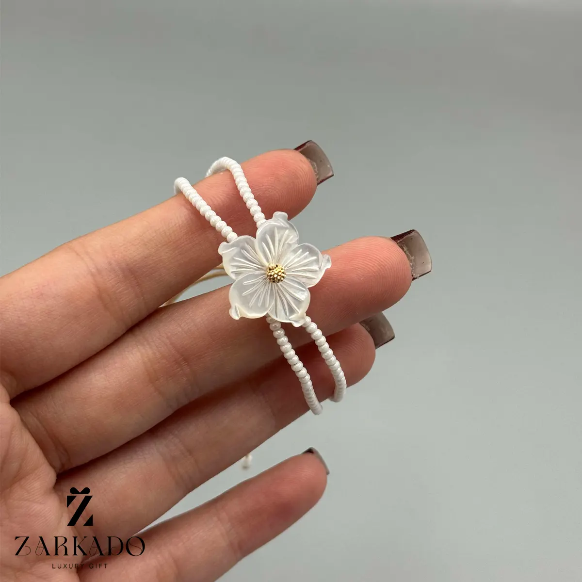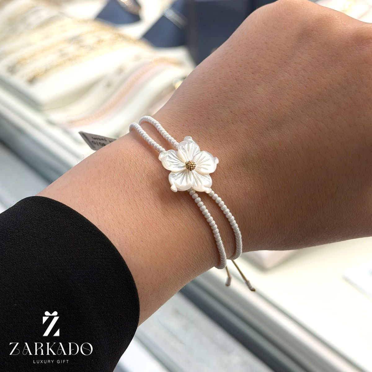 - در مرکز دستبند یک گل سفید رنگ قرار دارد