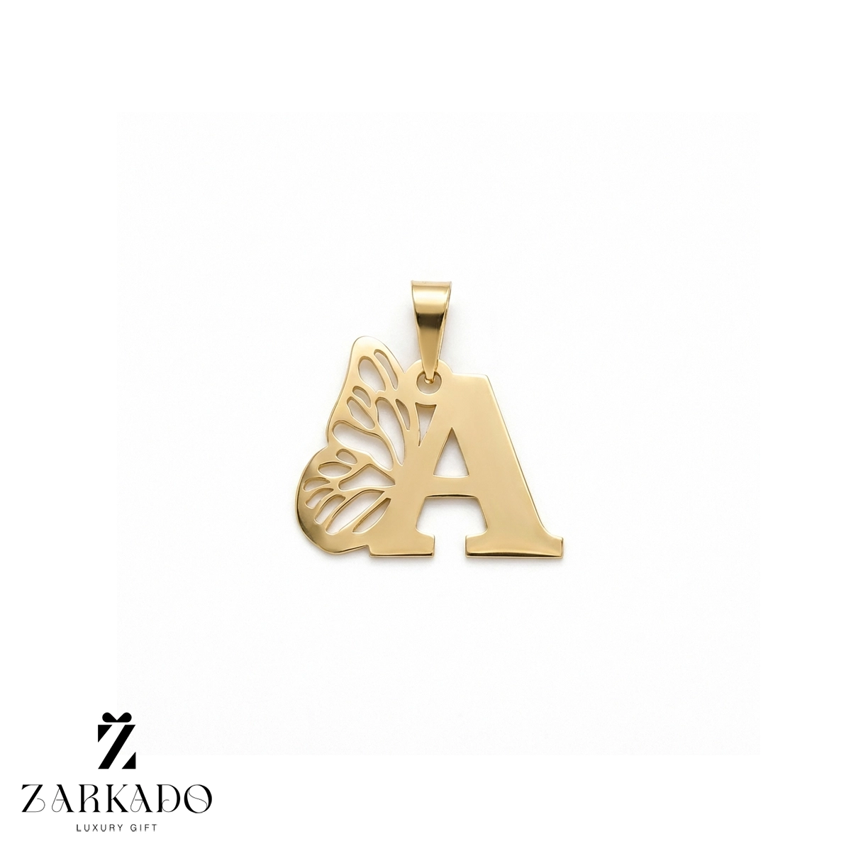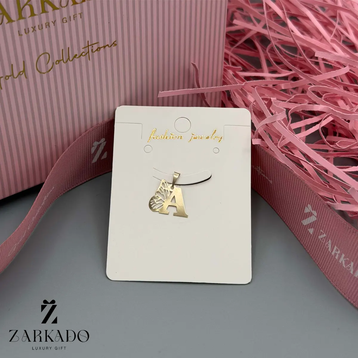 پلاک لیزری طلا حرف A با بال پروانه از جنس طلای 18 عیار میباشد
