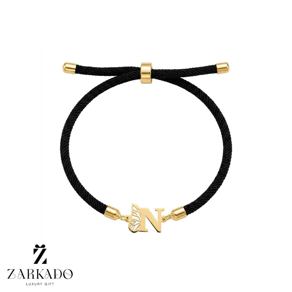دستبند بندی با پلاک حرف N با بال پروانه از جنس طلا، انتخابی ظریف و شیک برای استفاده روزمره یا هدیهای شخصی و ماندگار.