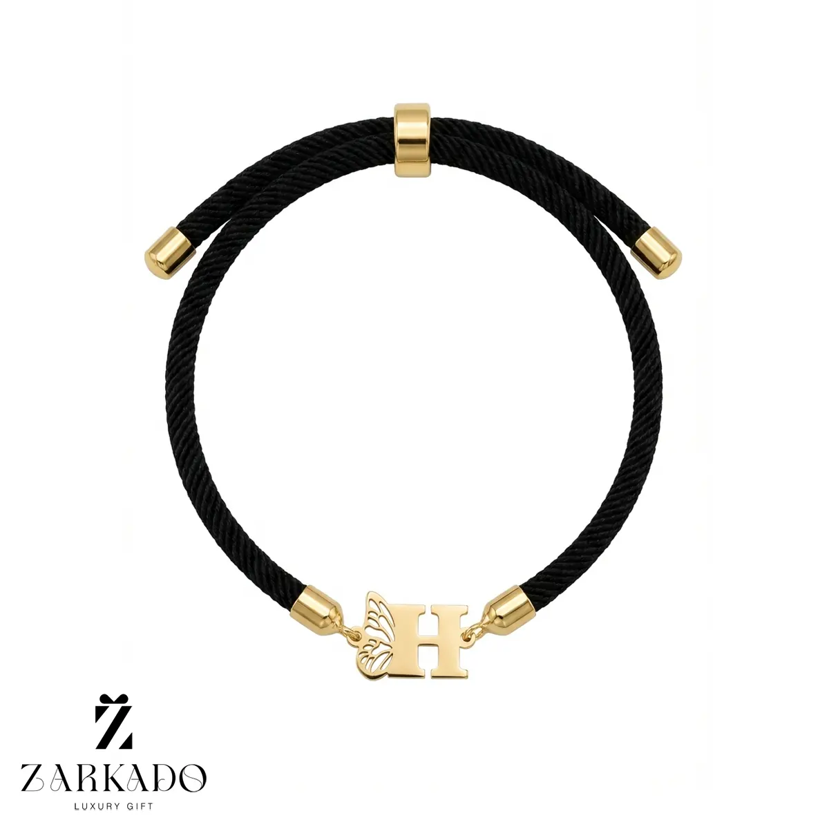 دستبند بندی با پلاک حرف H با بال پروانه از جنس طلا، انتخابی ظریف و شیک برای استفاده روزمره یا هدیهای شخصی و ماندگار.