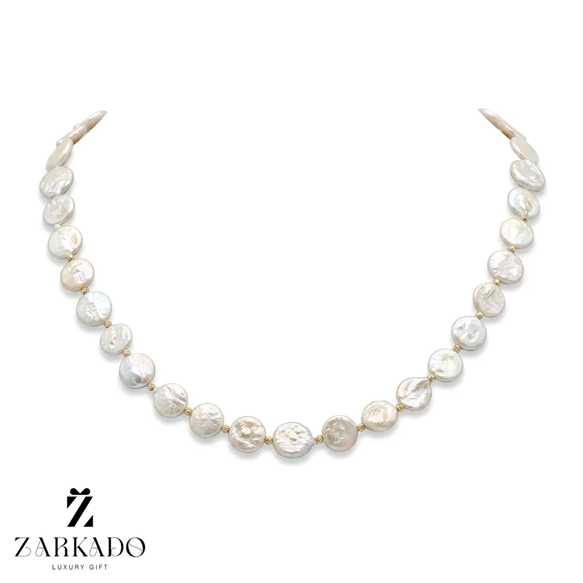 میان مرواریدها، از گوی البرنادو طلای ۱۸ عیار با آبکاری زرد استفاده شده که در کنار رنگ سفید مرواریدها، تضادی چشمنواز و لوکس ایجاد میکند. وزن طلای بهکاررفته در این گردنبند ۰.۴۴ گرم است که آن را به گزینهای سبک، ظریف و در عین حال ارزشمند تبدیل میکند.