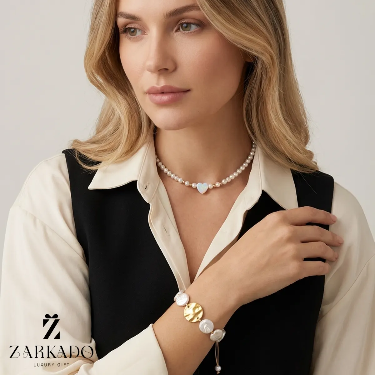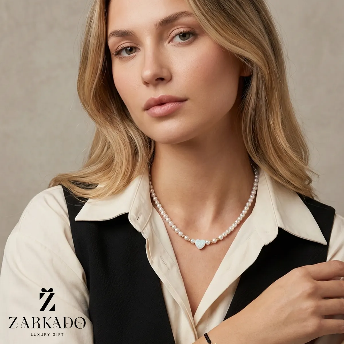این گردنبند زنانه مدل چوکر با طول ۴۰ سانتیمتر، از مرواریدهای شِل (صدف) ساخته شده که با سطحی صاف و درخشش ملایم، جلوهای لطیف، تمیز و زنانه ایجاد میکنند. استفاده از مروارید شِل باعث شده گردنبند ظاهری یکدست و سبک داشته باشد و برای استفاده روزمره یا هدیهای احساسی کاملاً مناسب باشد.