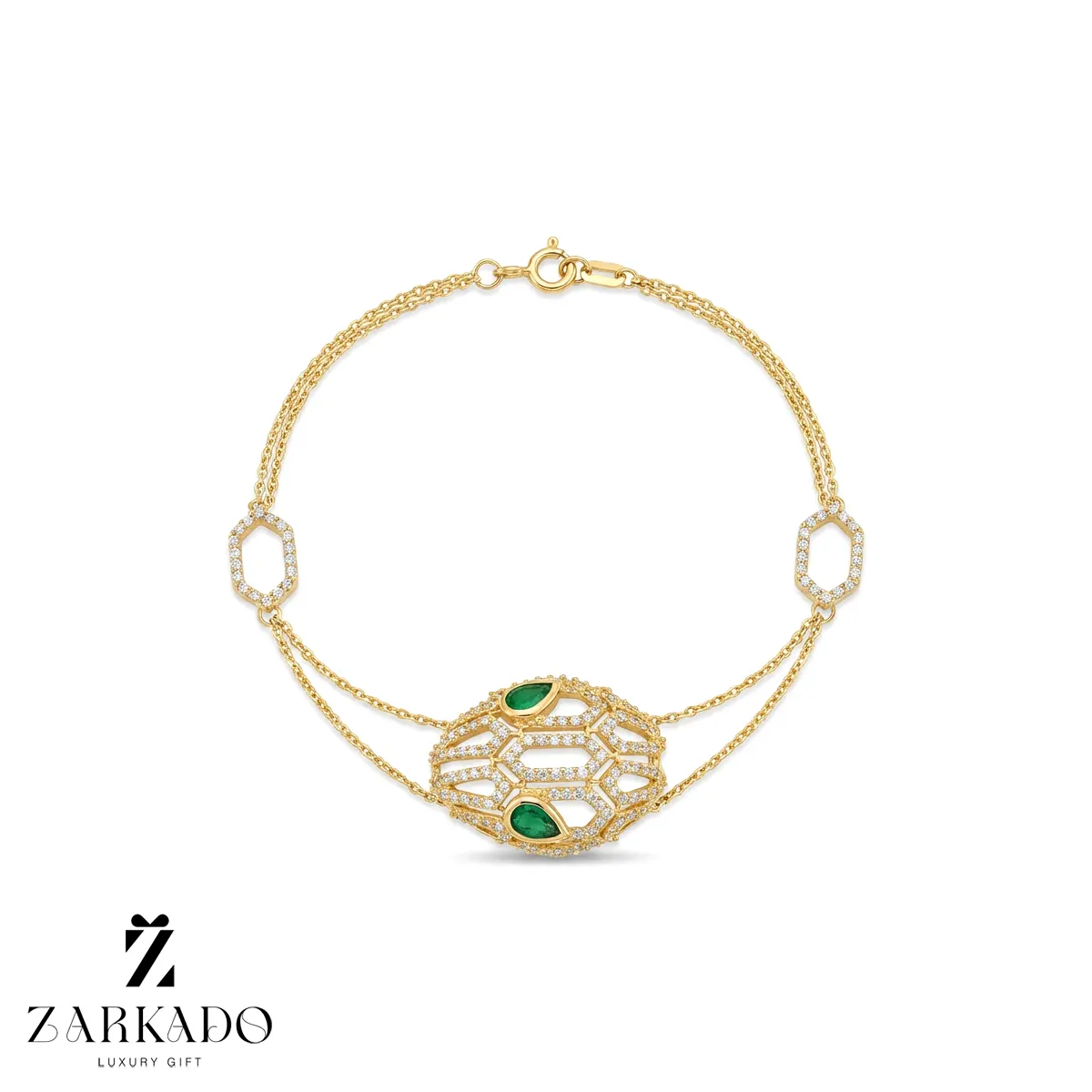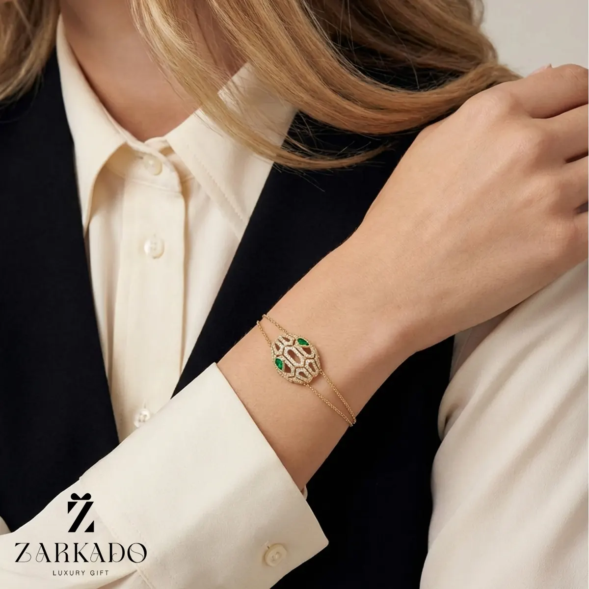 دستبند طلا ۱۸ عیار با نگینهای سبز و سفید – ظرافتی ماندگار و لوکس ✨