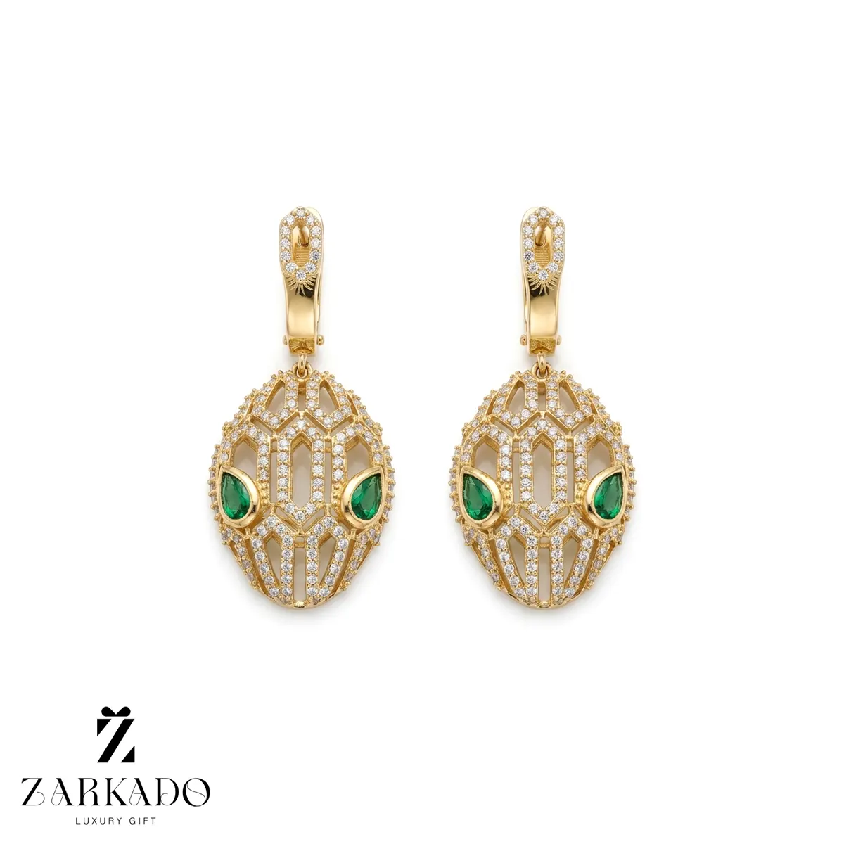 این گوشواره طلا با الهام از طراحیهای کلاسیک بولگاری، انتخابی لوکس و چشمگیر برای افرادی است که به زیورآلات خاص و متفاوت علاقهمندند. ترکیب طلای زرد با ساختار مشبک ظریف و نگینهای سبز، جلوهای اشرافی و در عین حال مدرن به این گوشواره داده است.