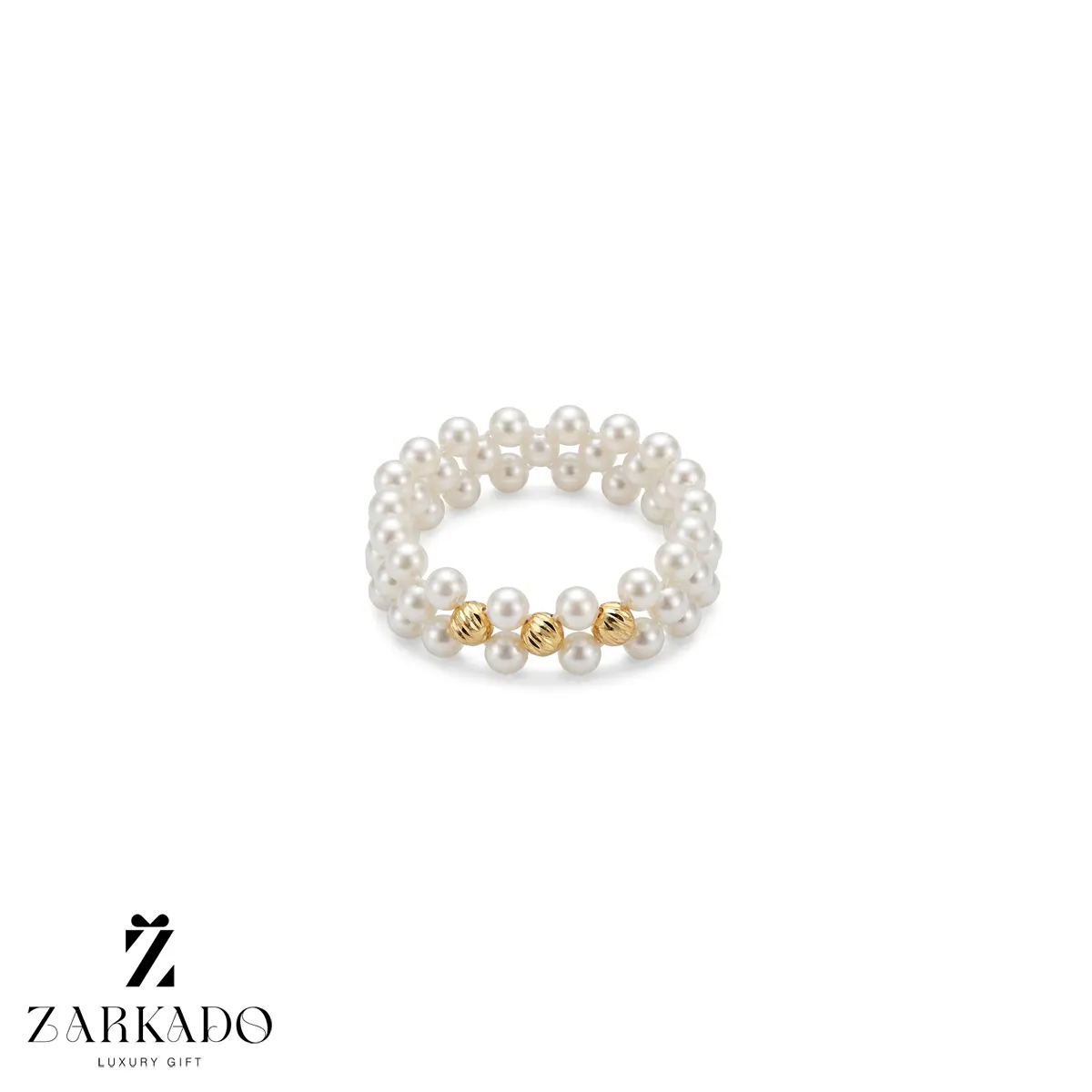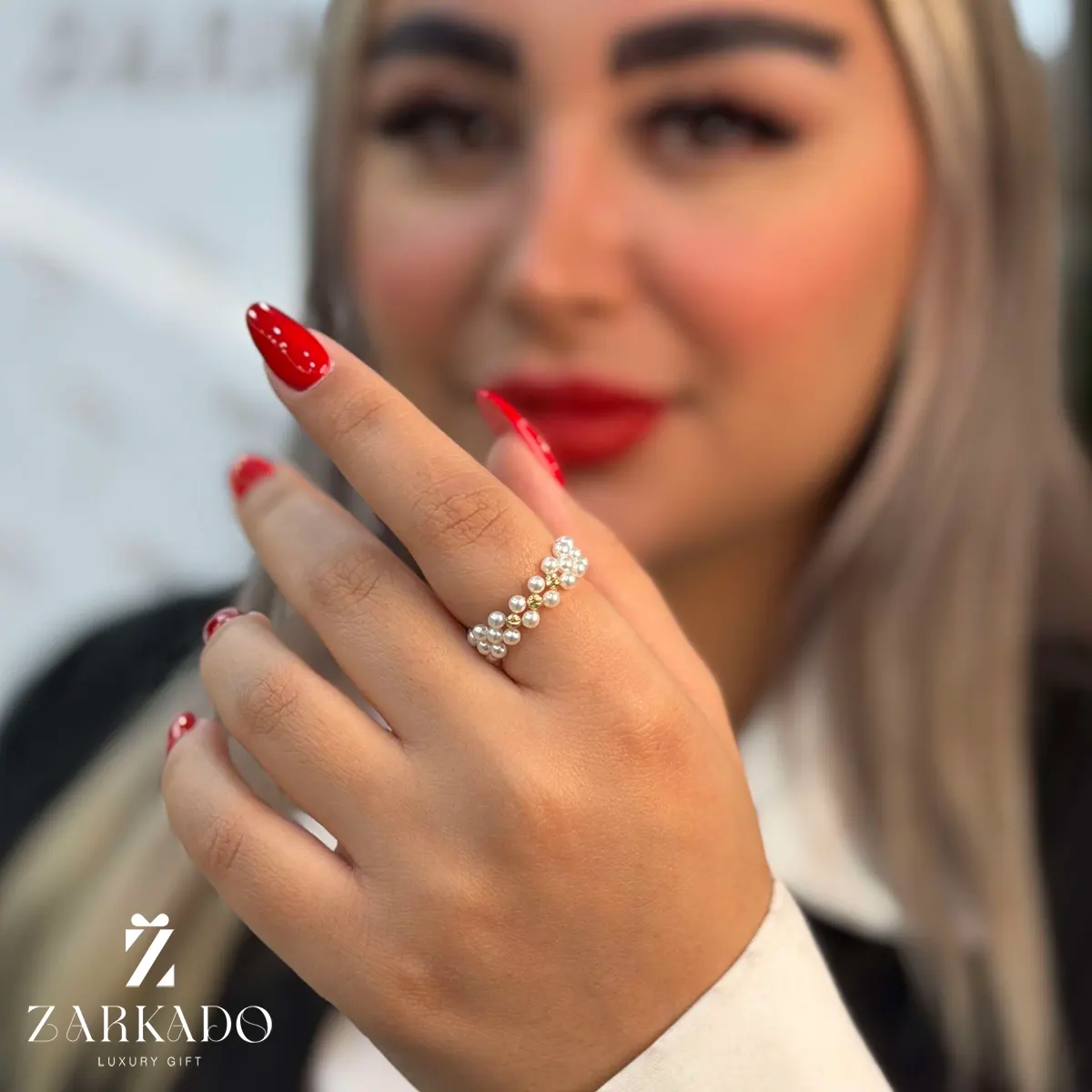 • ترکیب مرواریدهای سفید با طلای زرد و گویهای البرنادو، این مدل را در دسته انگشترهای مرواریدی مدرن و مناسب برای استایلهای روزمره، مینیمال و هدیهای قرار میدهد 🎁