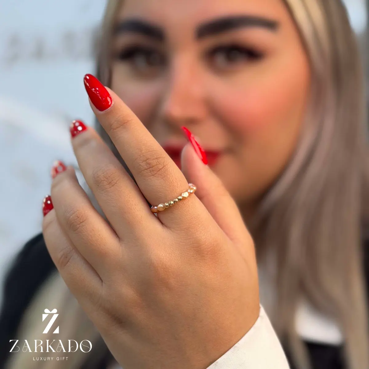 • این انگشتر از مرواریدهای پرورشی با فرم بیضی و طیف رنگی رزگلد ملایم تشکیل شده که با سطح براق و طبیعی خود جلوهای لطیف و کلاسیک ایجاد میکنند ✨