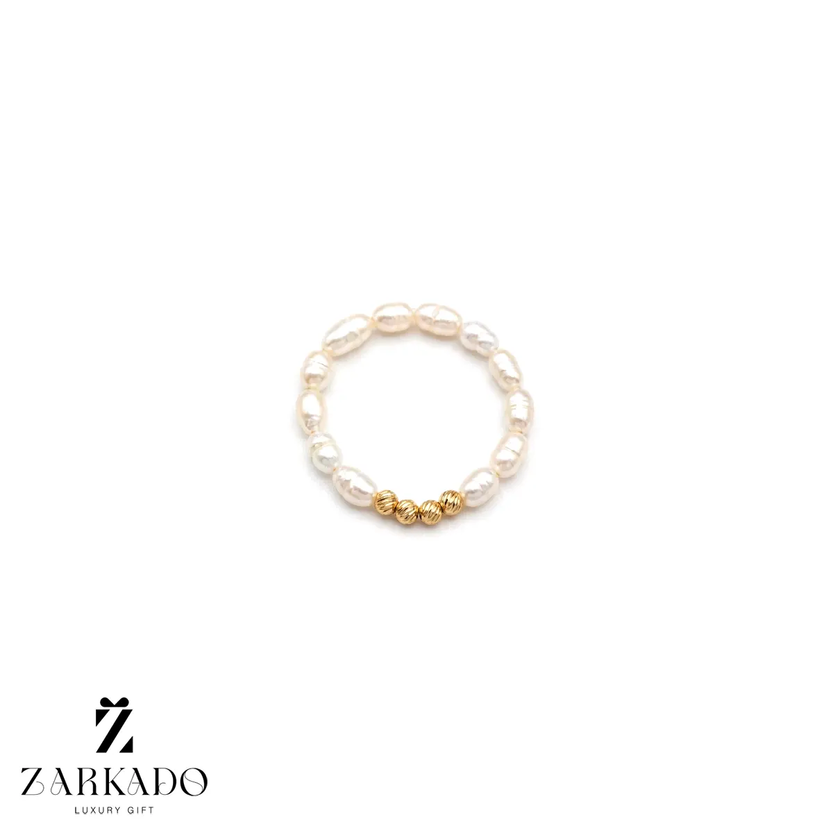 • این انگشتر از مرواریدهای پرورشی سفید با فرم بیضی طبیعی ساخته شده که در کنار هم حلقهای منظم و ظریف ایجاد کردهاند ✨