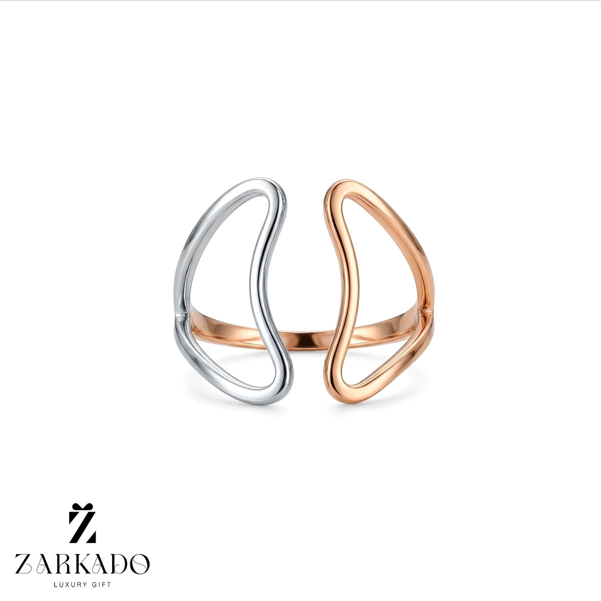 این انگشتر از طلای ۱۸ عیار ساخته شده و از دو بخش منحنی با طراحی ارگونومیک تشکیل شده است که به زیبایی روی انگشت قرار میگیرند ✨