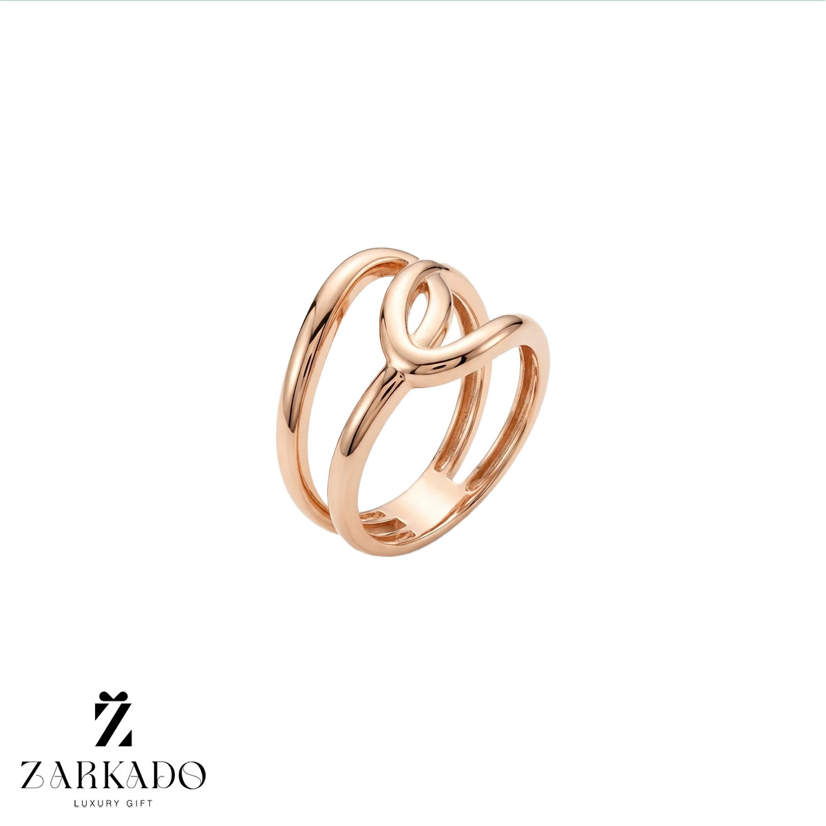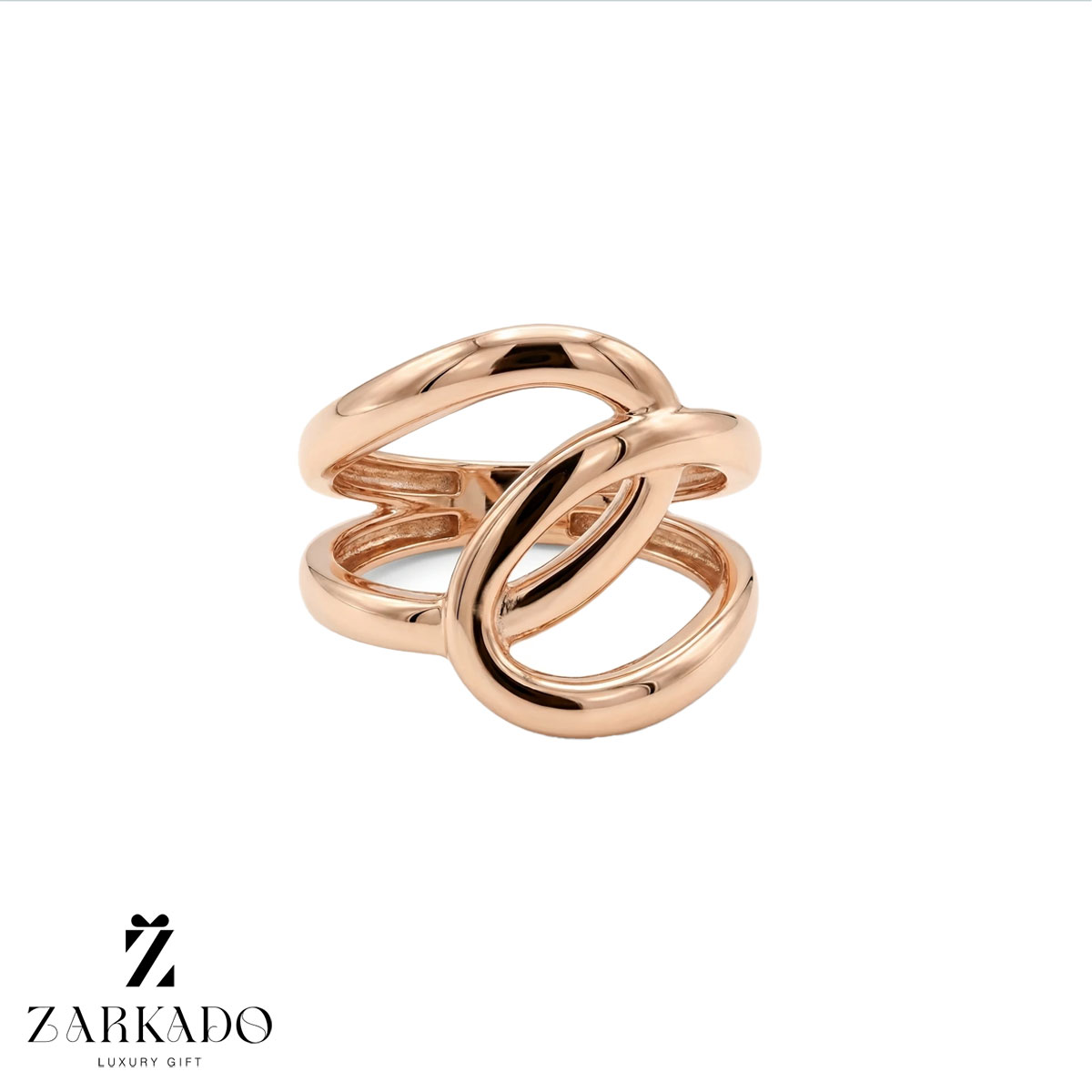 طراحی اصلی انگشتر از ترکیب دو بند موازی تشکیل شده که با یک عنصر هندسی درهم در مرکز به هم متصل شدهاند؛ این اتصال پیوسته حالت معماری و ساختارمند به کار میدهد و سبب میشود انگشتر با وجود سادگی، هویت طراحی مشخصی داشته باشد 💍